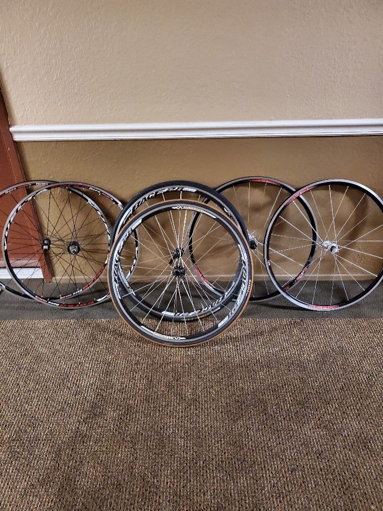 Like the title says $300 for all 3 wheelsets or $100 each set these are the ones that came from my previous bikes replaced them and with 11speed wheelset these one are 9-10speed. No cassette the only one with tires are the alexxrims the other 2 dont have it. Fuji giant specialized cannondale cervelo bianchi look shimano
