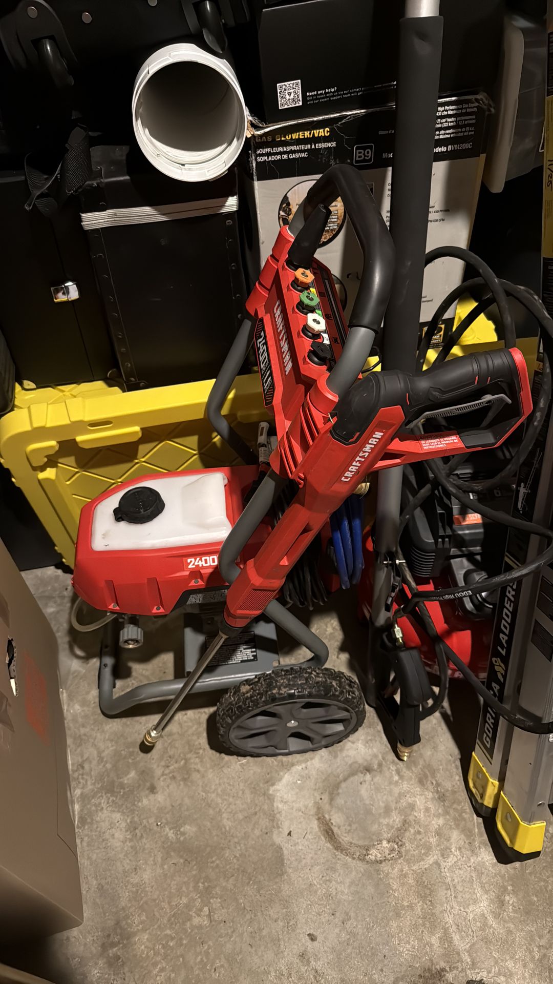 Powerful cleaning: 2400 PSI and 1.1 GPM (when used with 15 degree nozzle) for cleaning power to do a variety of tasks Up to 2nd floor reach (based on 6-ft person holding 15° nozzle at head level, spraying water upwards and each story averaging 10-ft) Clean with soap: Integrated soap tank helps give it a great clean Onboard storage: Storage organization for nozzles, hose, cord, and wand to keep accessories organized Long-lasting performance: 25-ft kink-resistant hose helps reduce hassle and provides long-lasting performance Extended reach: 35-ft power cord for range from your outlet Ease of movement: 10-in wheels for maneuvering around objects.. Cleaning Equipment Trade Association (CETA) Certified Includes: (1) CMEPW2400 Pressure Washer, (1) 15° Nozzle, (1) 25° Nozzle (1) 40° Nozzle, (1) Turbo Nozzle, (1) Soap Nozzle, (1) 25-ft Hose, (1) Trigger Assembly and (1) Wand Assembly 2400 PSI 1.1 GPM. Telescoping wand reaches top of 2 story for gutters. Also have multiple smaller swivels and arms/attachments. In good working order just won’t be able to use after moving. EDOU Direct Telescoping Pressure Washer Wand 19' | Heavy Duty | 4,000 PSI Max Working Pressure RIDGE WASHER Gutter Cleaner Attachment for Pressure Washer, with 2 Rotary Turbo Nozzle, 1/4 Inch Quick Disconnect, 3600 PSI