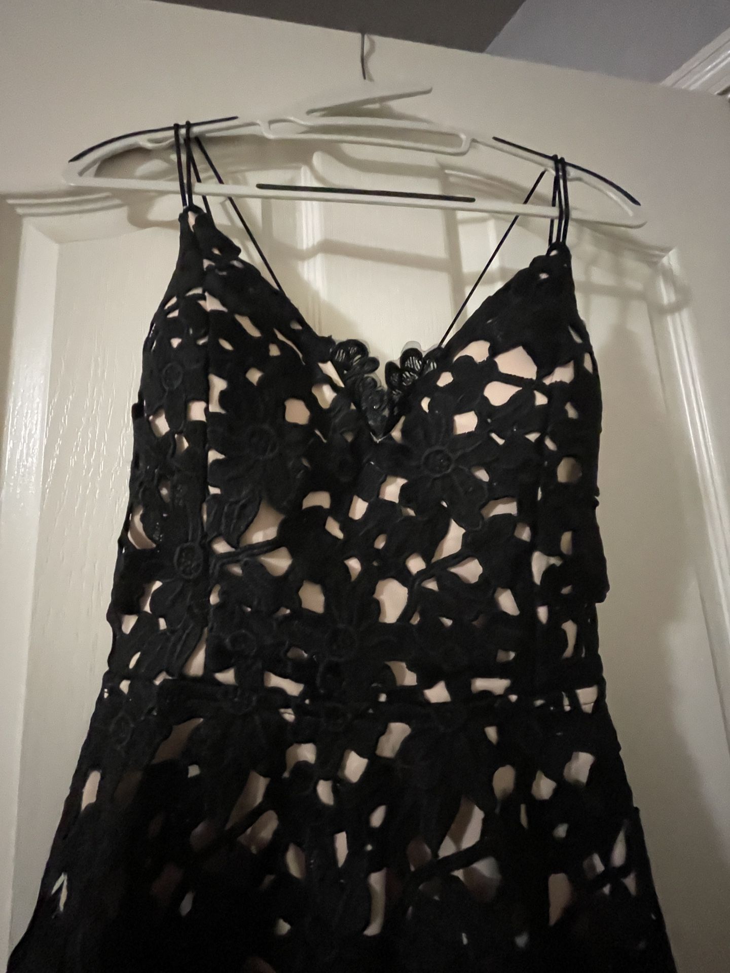 Only worn once. Size large but runs small. Longer in the back and above the knee in front. Need to see it to appreciate.