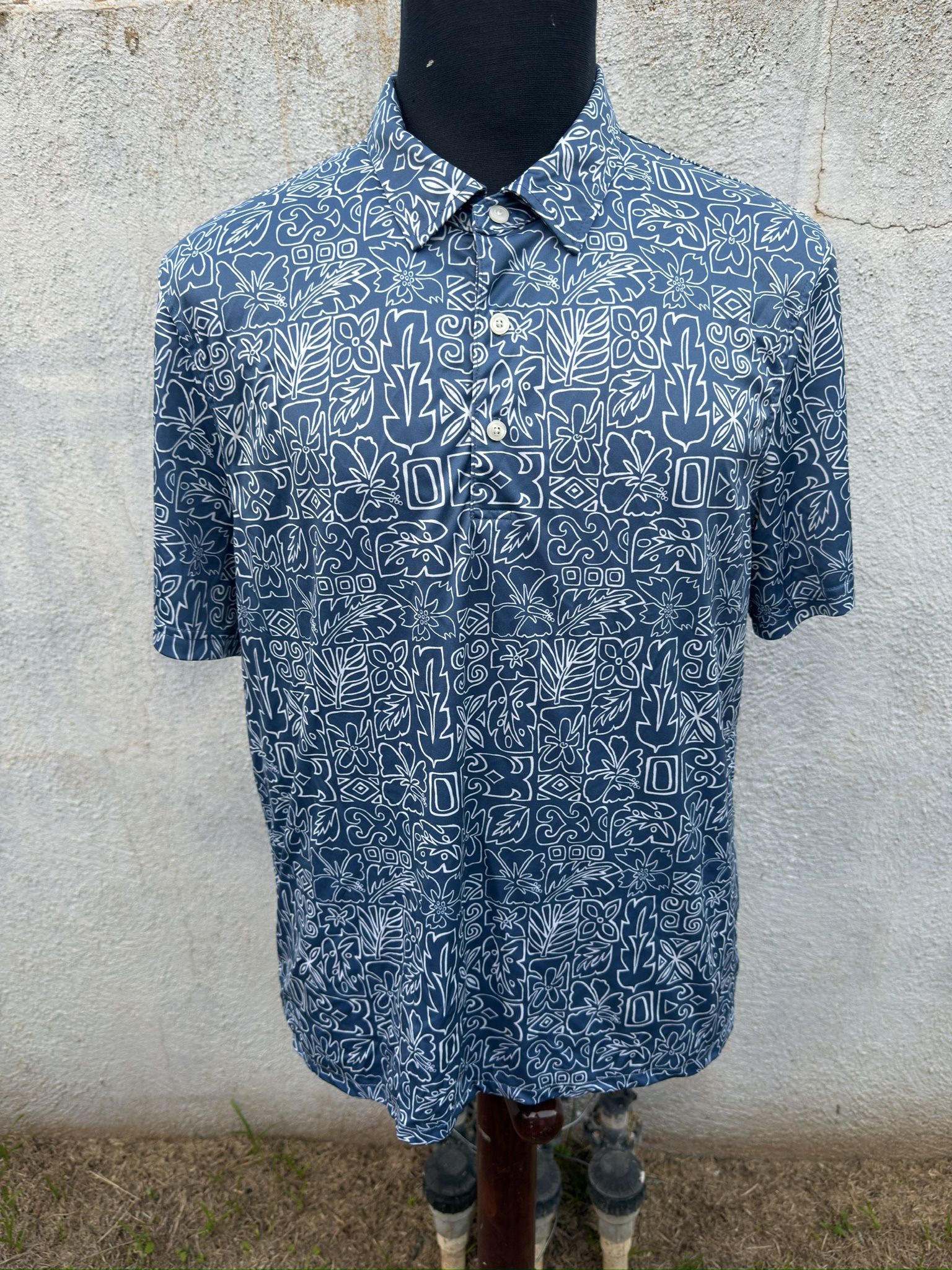 PreOwned Reyn Spooner Brrr Polo Shirt Hawaiian Print Men's Large