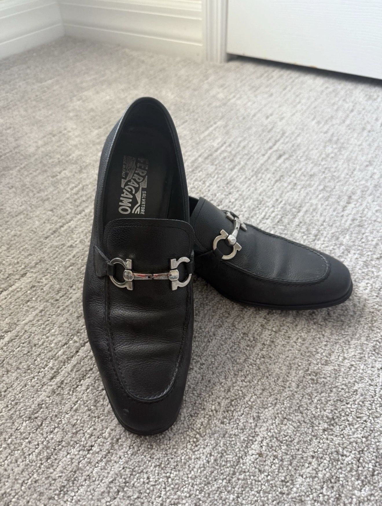 Salvatore Ferragamo Men's Leather Loafers Giangini Ornament Black Sz 8