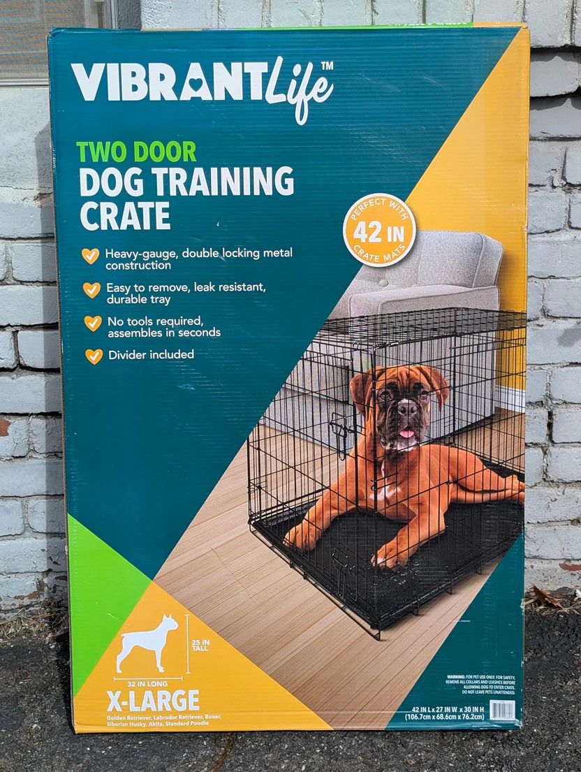 Vibrant Life XL Two Door Dog Training Crate 42in Heavy Duty Metal Pet Kennel