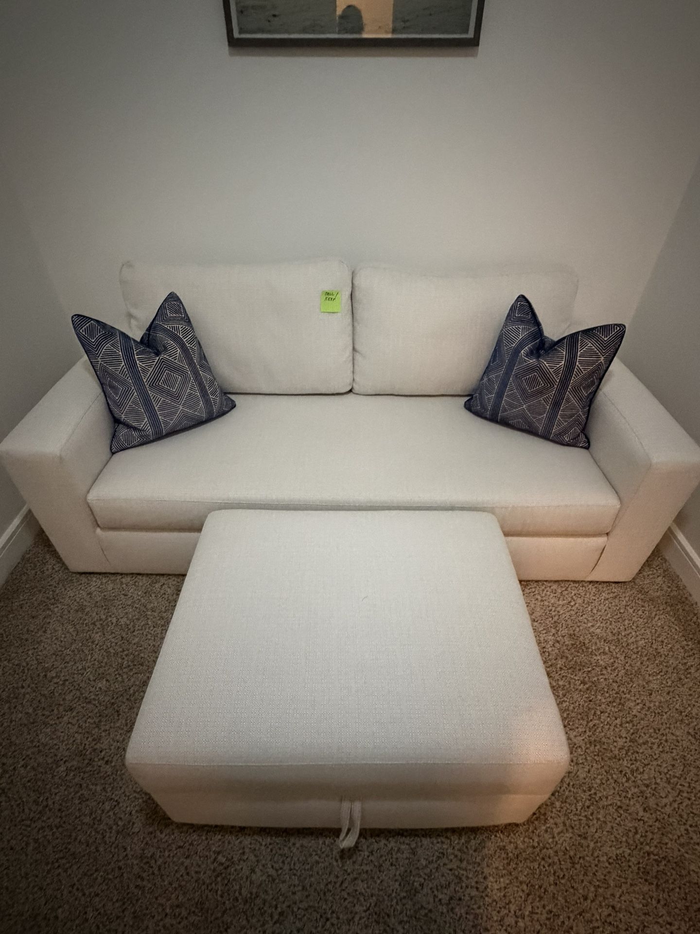 Isabella Sand Queen Sleeper Sofa and Isabella Sand Storage Ottoman for sale LIKE NEW Originally purchased for $1500 Sofa bed includes memory foam