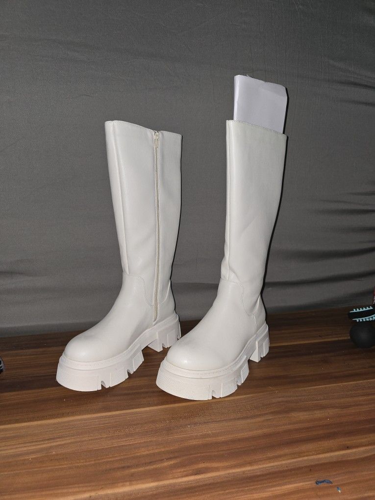 White Chunky Boots - Size 6