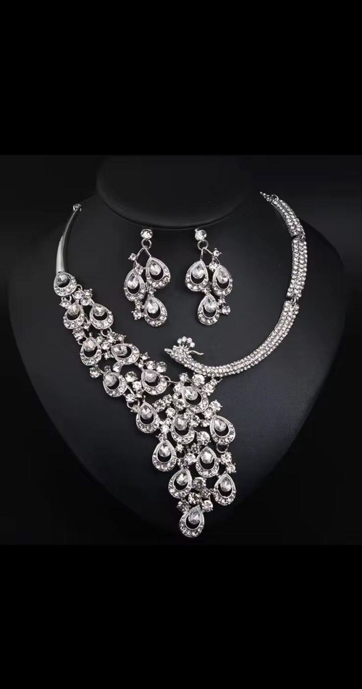 Luxury Teardrop Gemstone Peacock Necklace and Earrings Set Bridal Dubai Banquet Jewelry Colorfu Stage Fashion Gift Same day Free home delivery