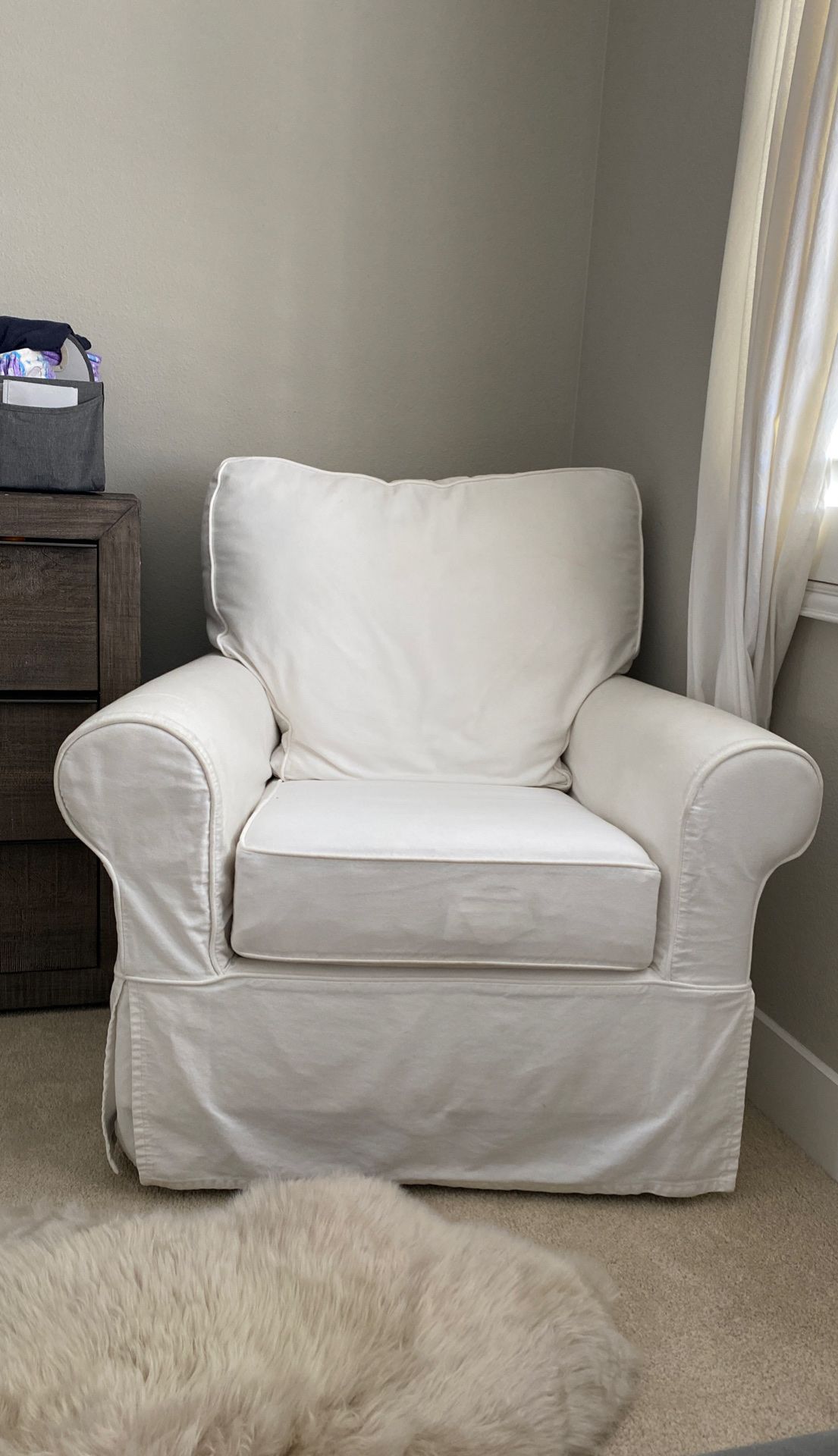 Potter Barn comfort slip cover rocking chair. 360 swivel and removable slipcover.