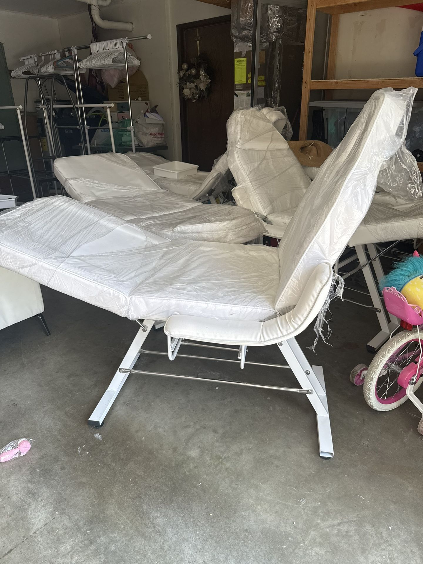 6 fully functional, in great condition, whites, salon beds. We also have an additional 3 black massage/salon beds as well. $100 per beds.