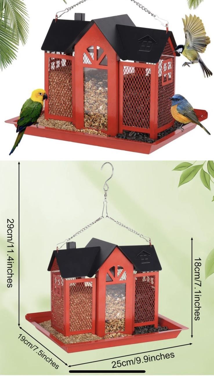 Brand New in Box 📦 Red Metal Mesh Hanging Bird feeder. Indoor / outdoor. Beautiful design with 3 Compartments . Picking up Locations : HIGHLAND PARK CA -90042 & SAN FERNANDO VALLEY CA .