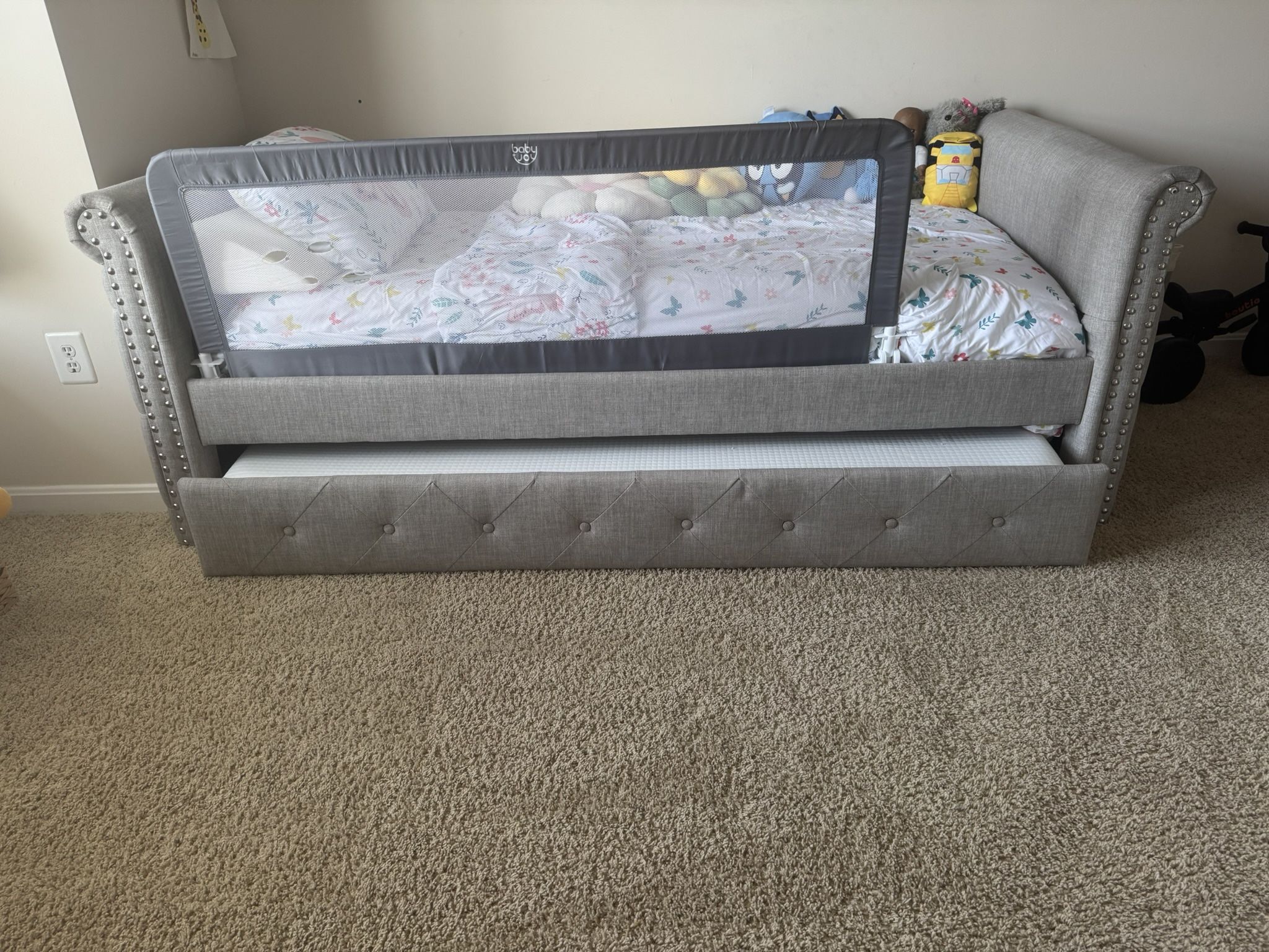 ✔️ Gently used, well-maintained, and clean ✔️ Sturdy frame with smooth pull-out mechanism ✔️ Ideal for guests, kids’ rooms, or small spaces ✔️ Fits standard twin-size mattresses (mattresses not included) The bed is in great condition with only minimal signs of use. Smoke-free and pet-free home. 💲 Priced to sell – grab it today and make your space more functional!