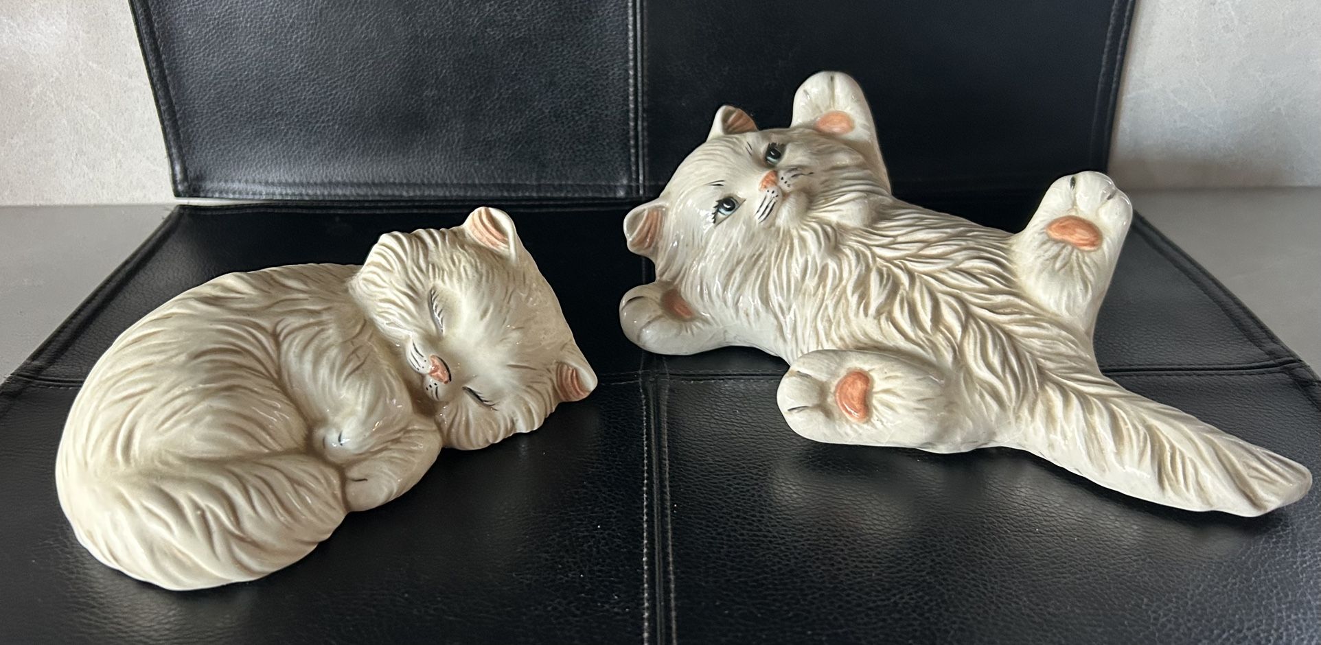Vintage 1980s pair of ceramic Persian cat figurines. Made by Scioto. Beautifully hand painted. No chips or cracks, in excellent condition. They measure 6 and 9 inches long. Pick up in Mundelein.