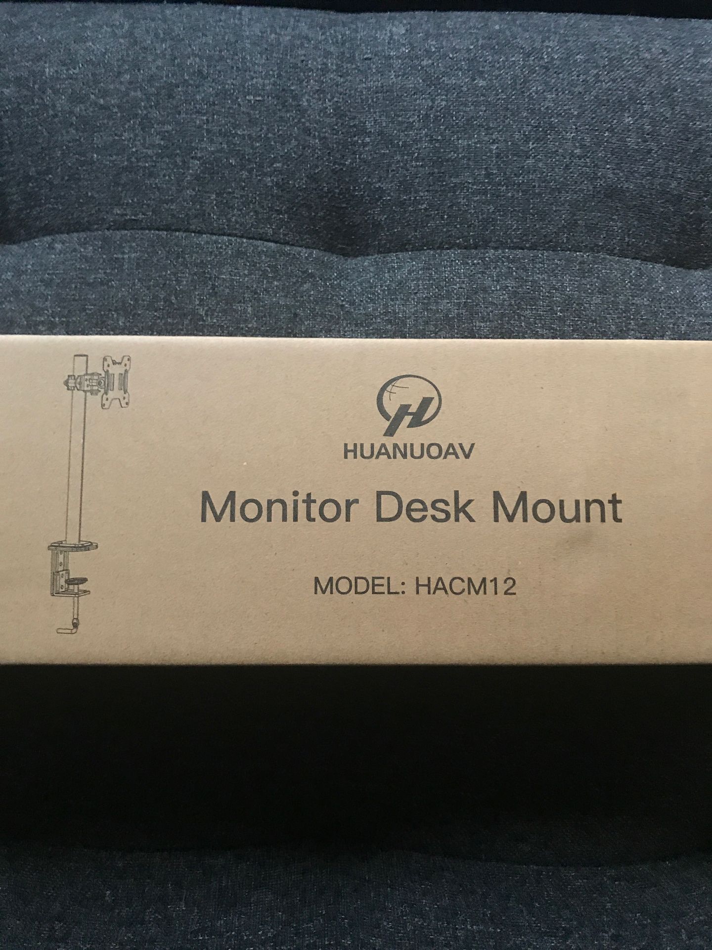 Still in box. Started to install but doesn’t work with our set up. Description on Amazon says “Single Monitor Stand - Computer Monitor Stand for 13 inch to 32 inch Screen, Adjustable Height, Tilt, Swivel, Rotation, Weight up to 17.6lbs”
