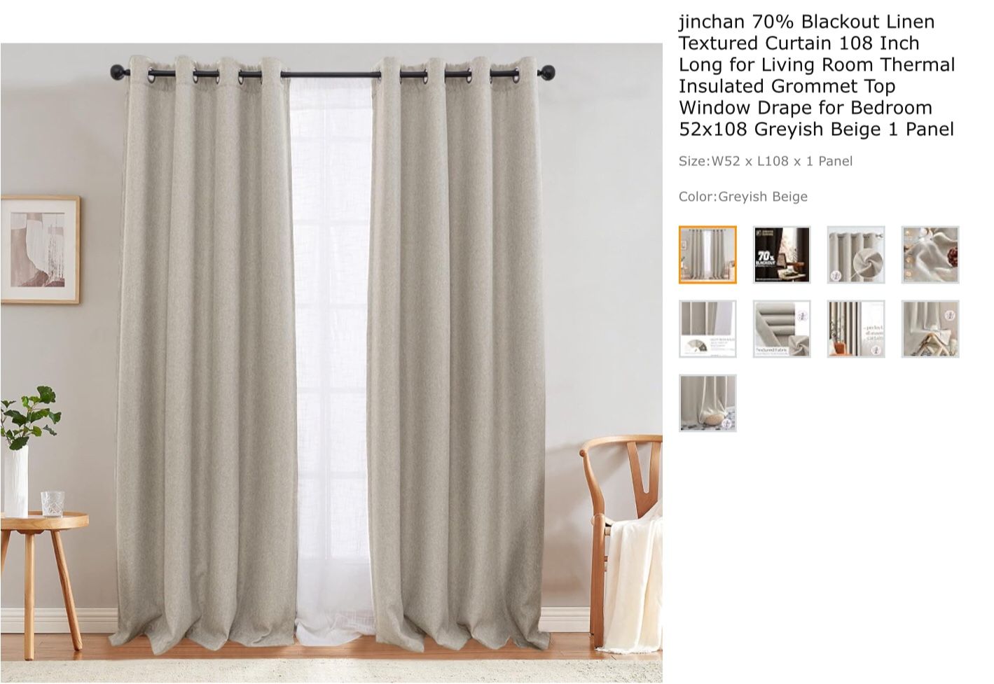 Beautiful Grey/beige linen black out curtains 108β did it match my wall color ~ other wise perfect for high ceilings flat/ vaulted Check out my other items Happy shopping ποΈ