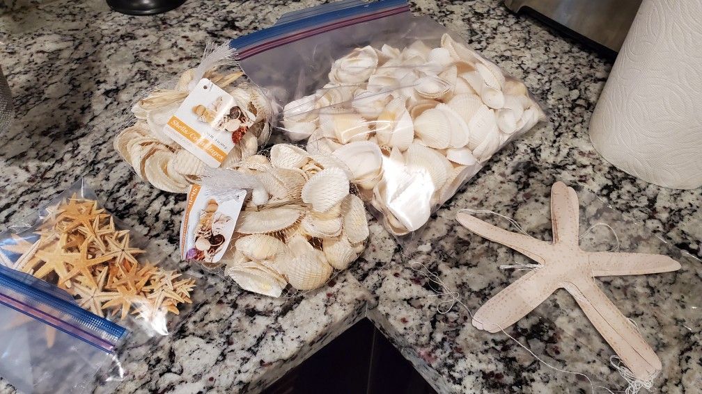 Items were bought for a retirement party. No longer needed. There were two bags of Seashells that were never used. Still in the bag.