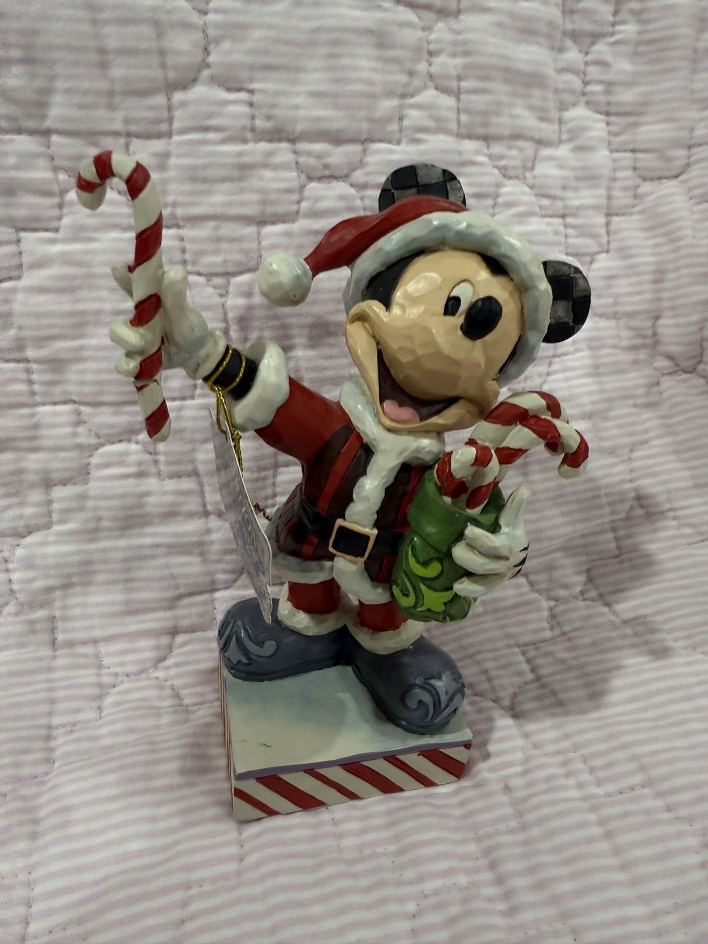 Jim Shore’s Festive Mickey Mouse with Santa hat holding Candy Canes $40 Brand new with tags