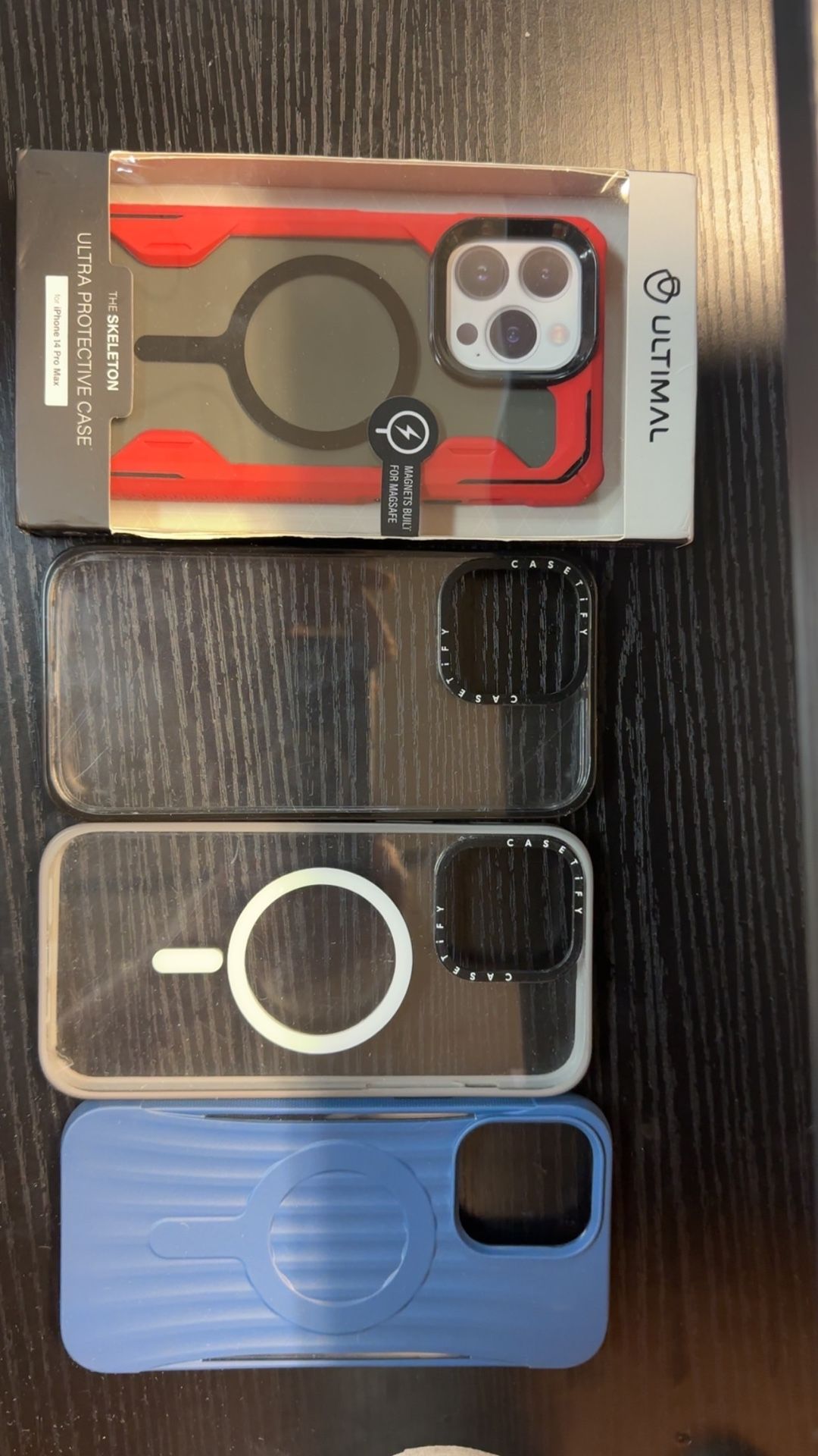 2 casetify cases (scratches on back case) 1 blue mag safe case 1 red ultimal case