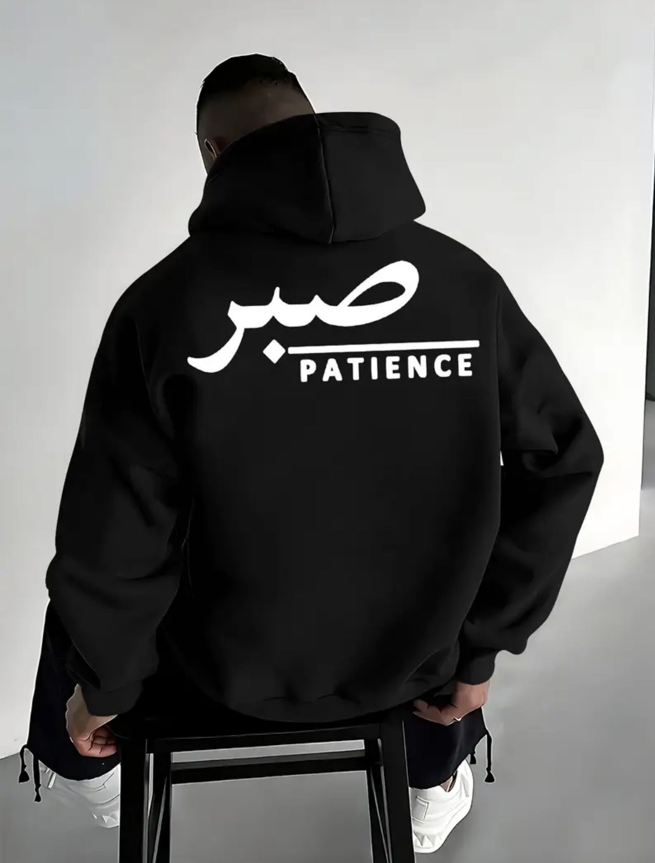 Men's Arabic Patience Calligraphy Hooded Sweatshirt - Arabic 'us'