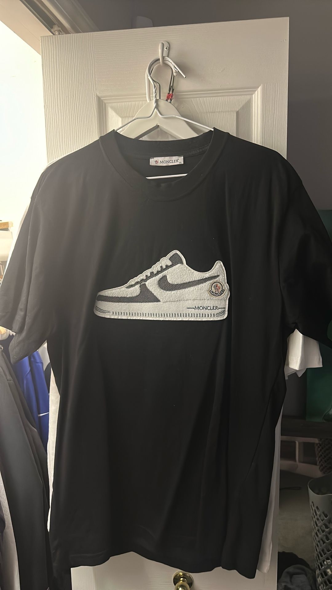 Moncler shirt never been worn, BRAND NEW. Mint condition. Black shirt with front label. Says XL for size but will fit a (L) Large.