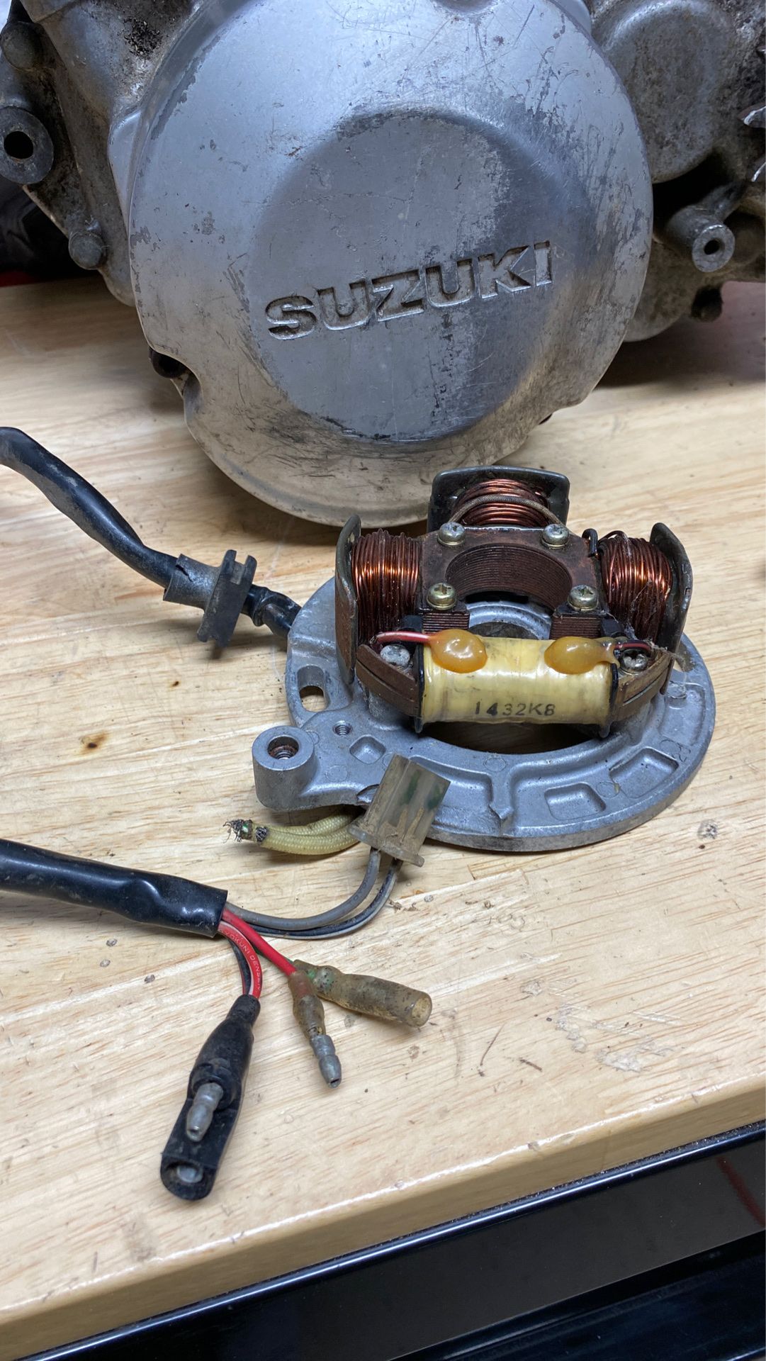 1989 Suzuki RM250 OEM stator. Not Chinese garbage. Has a chip out of it. Pretty sure the magnets and coils are good, wires are all good, so are plugs, the pick up coil has been cut off. Make offer, rare part for rare bike. Might fit others bikes.
