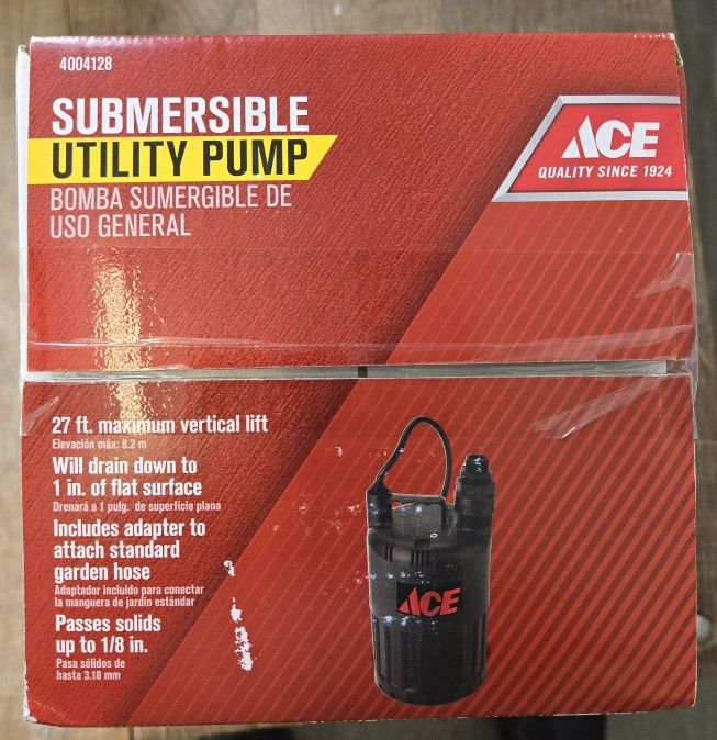 It's NEVER used and still in the box ACE Submersible Utility Pump. Firm on price of $50.00. Don't ask for a lower price. Exact cash only and no $50's. Pick up at Renton City Hall, safe exchange zone. **will remain posted until sold**