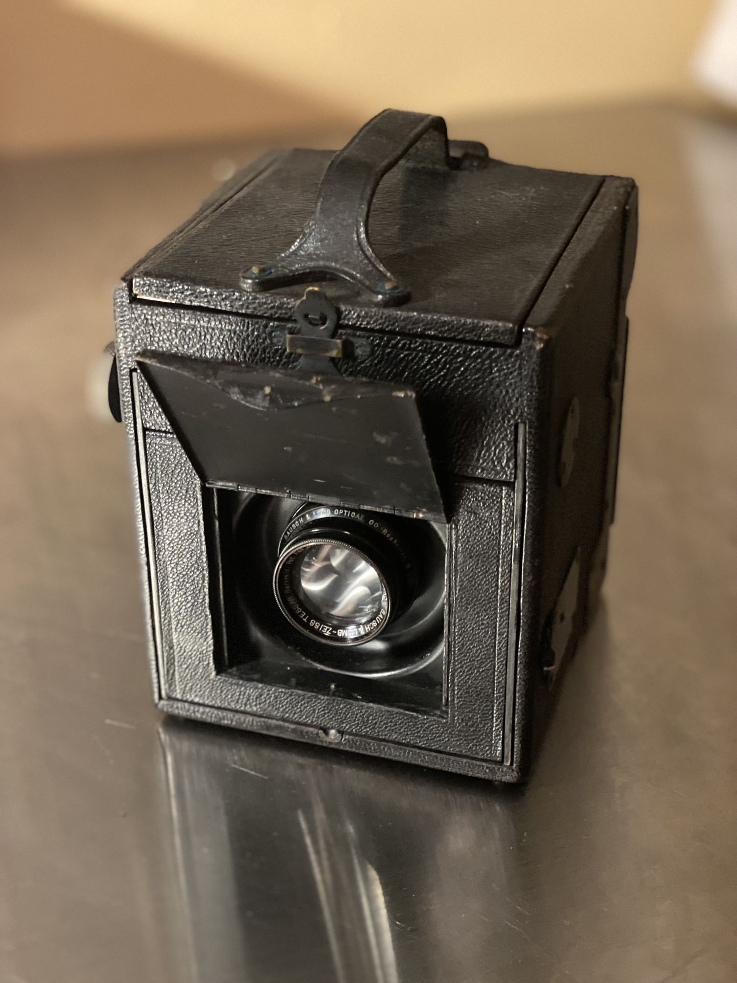 Good condition for its age! I haven’t tested it out, but the lens and glass look pretty good, the viewer pops up and looks good, it’s still got the dark slide, and based on the photos I’ve seen online, this one is in pretty good condition! Make me an offer.