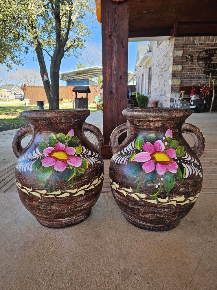 Brown Painted Clay Pots, Planters, Plants. Pottery, Talavera $80 cada una