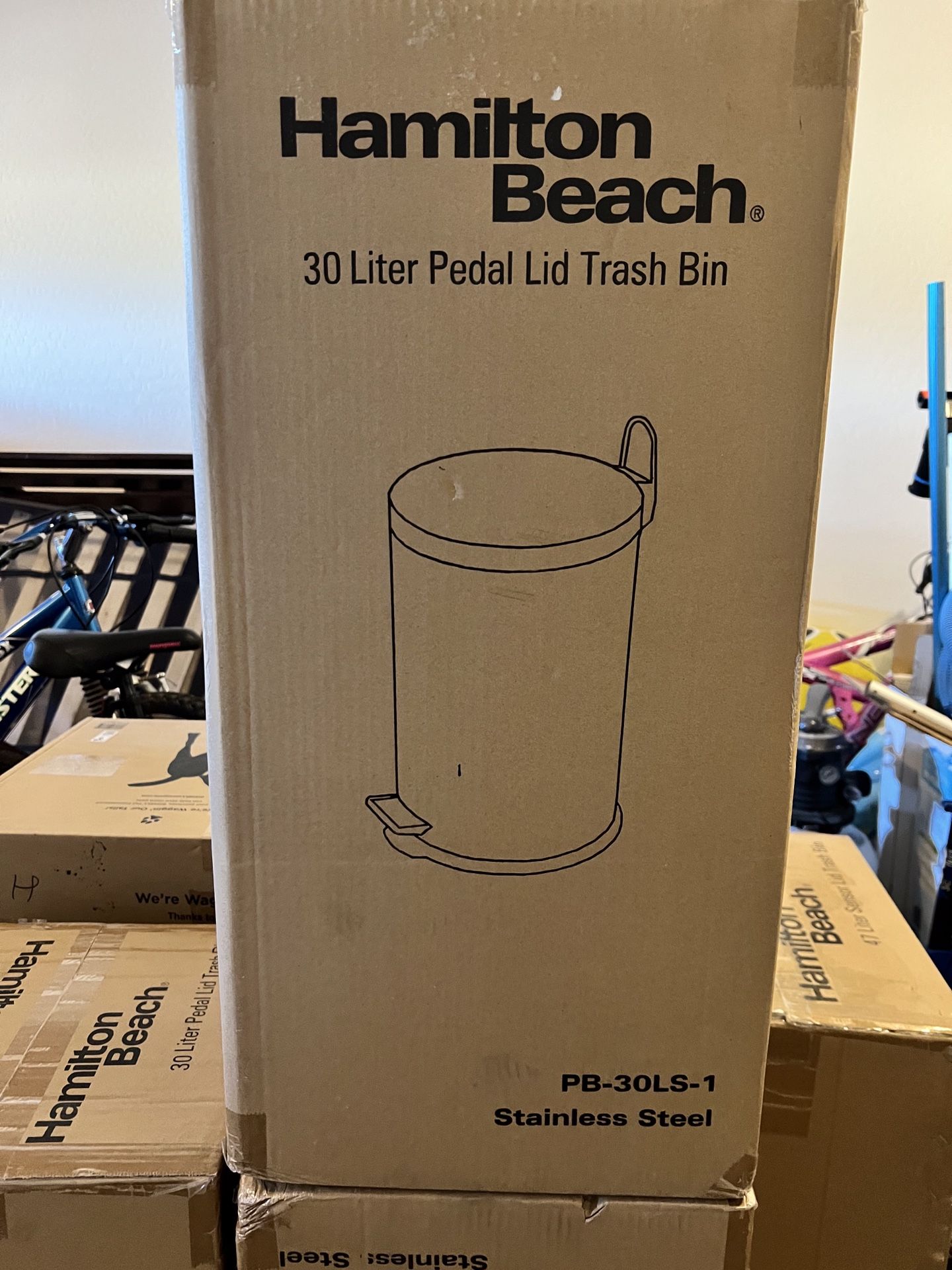 Brand new Hamilton Beach 30 Liter Stainless Steel Trash Bin.