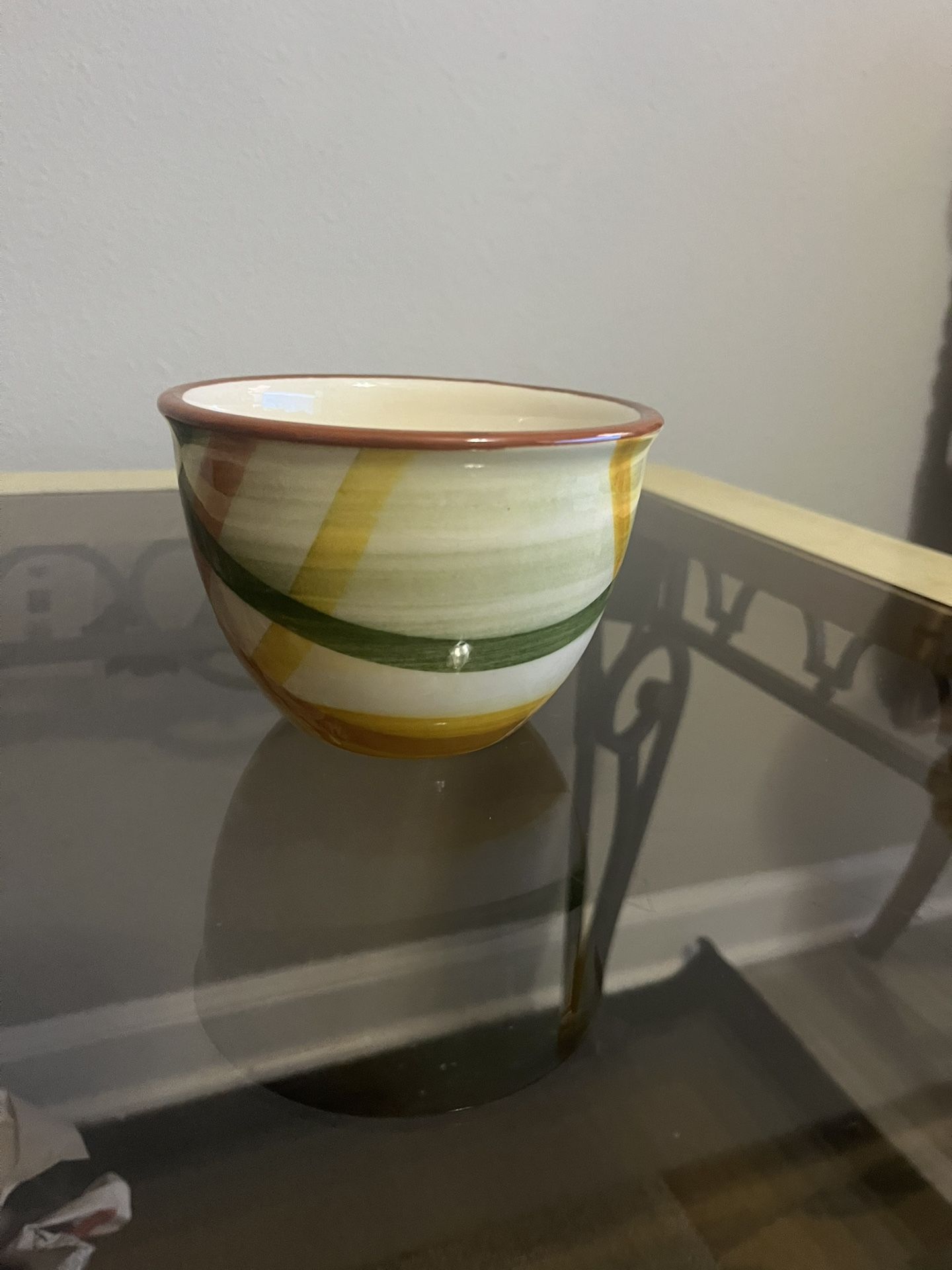 Add a mid-century touch to your kitchen! Selling this beautiful authentic Vernonware ceramic bowl, Made in the USA. The "Organdie" pattern features hand-painted plaid strokes in green, yellow, and brown, perfect for vintage lovers or collectors. • Brand: Authentic Vernonware (Made in U.S.A.) • Pattern: Organdie (Hand-painted) • Condition: Great vintage condition. No chips or cracks. • Location: Katy, TX Price: $25