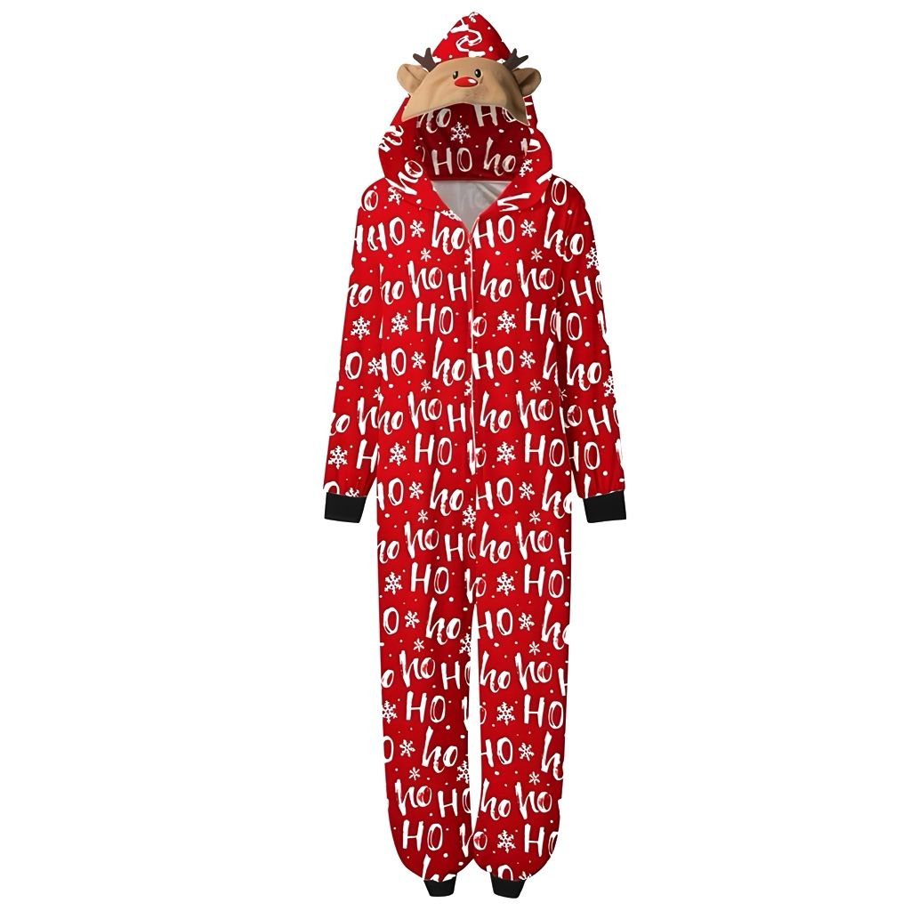 Reindeer Christmas Onesie Long Sleeve Letter Print Soft Pajamas - Men’s Large