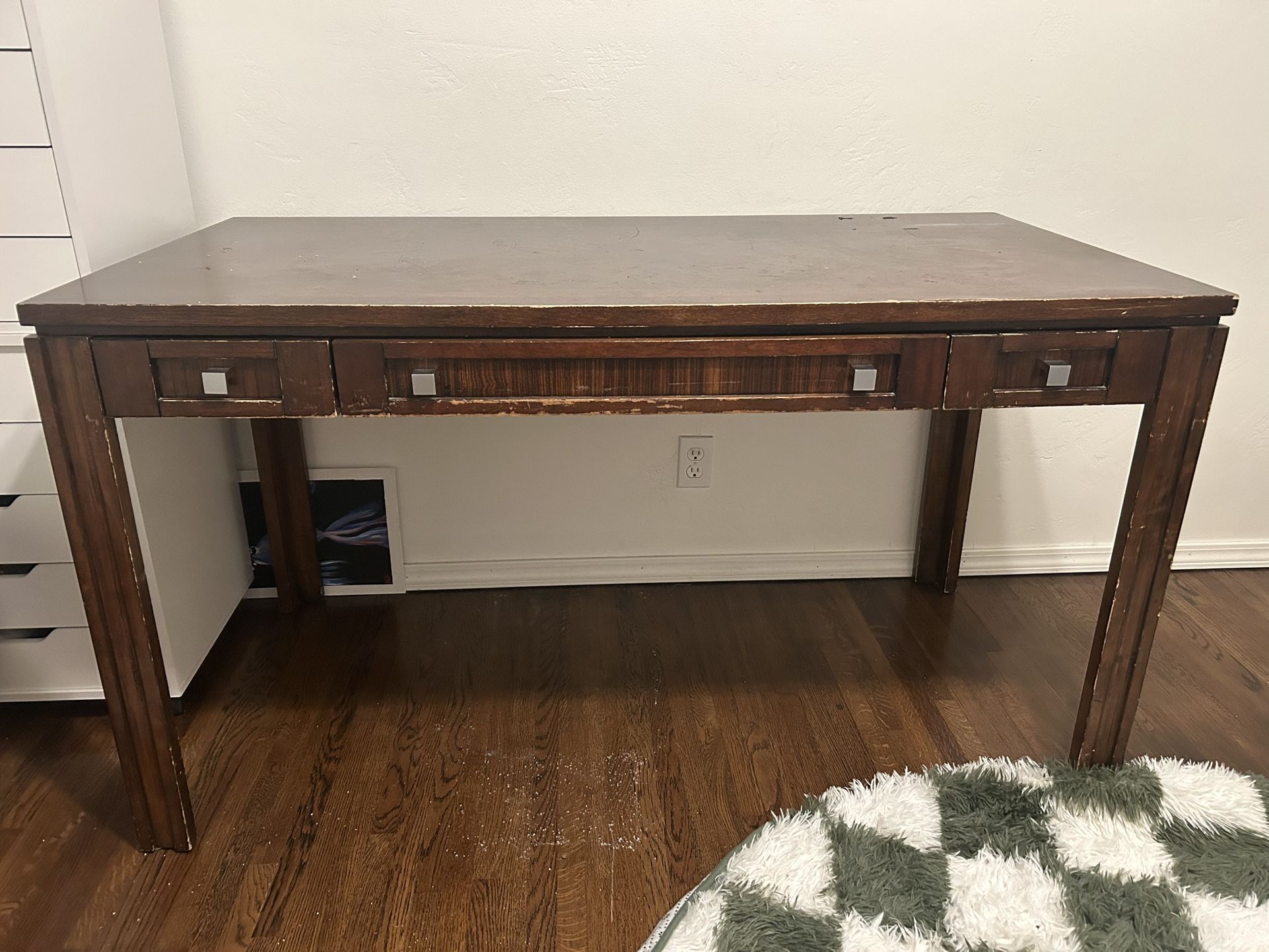 Large wooden desk, shows sign of usage! All 3 drawers work. must be able to pick up, no delivery! FREEEEEEEE.
