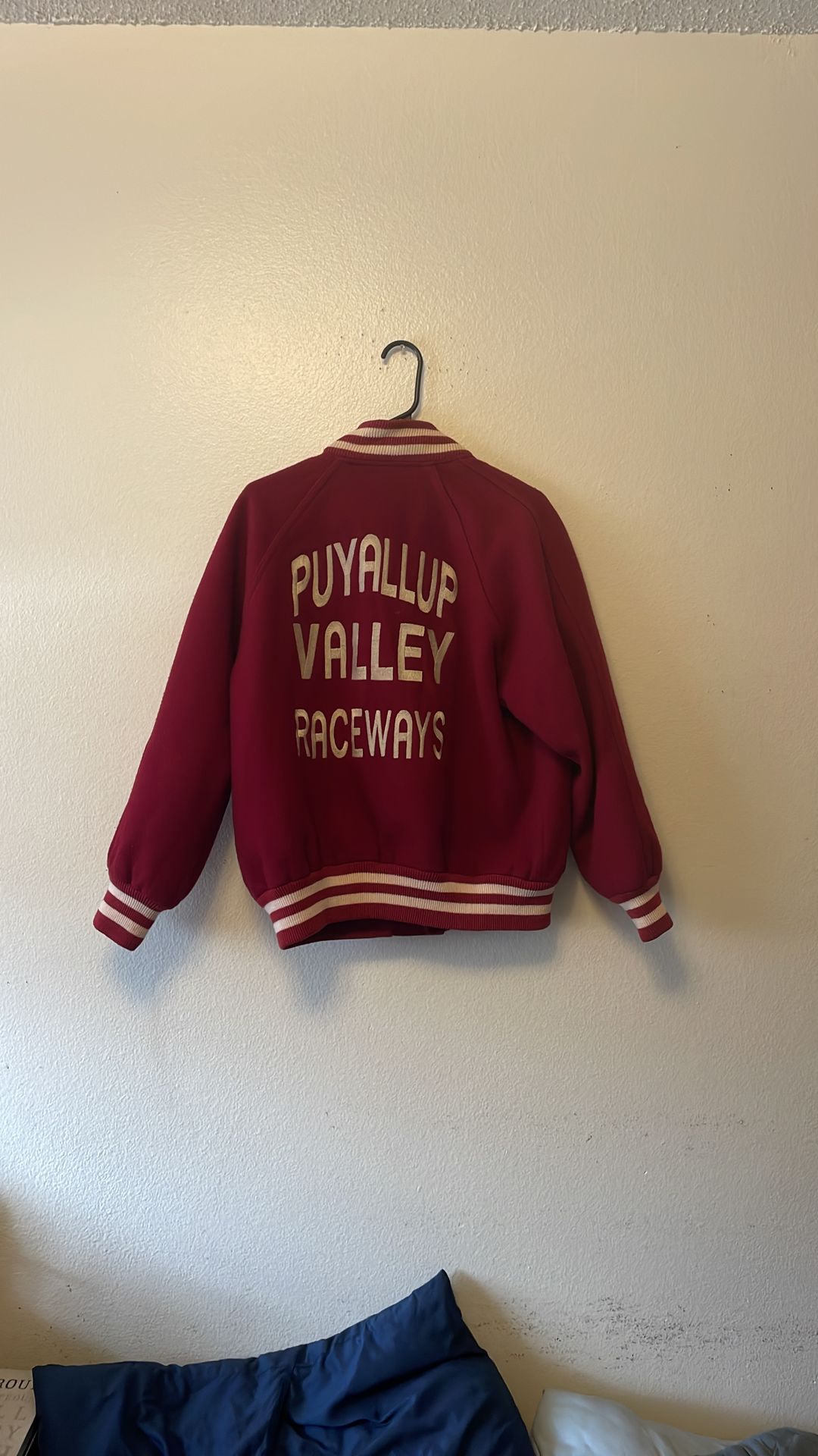 Rare vintage letterman style wool jacket size 40 made in Seattle USA Puyallup valley raceway in great shape smoke free house local meet up and pick up only no shipping $105 cash only