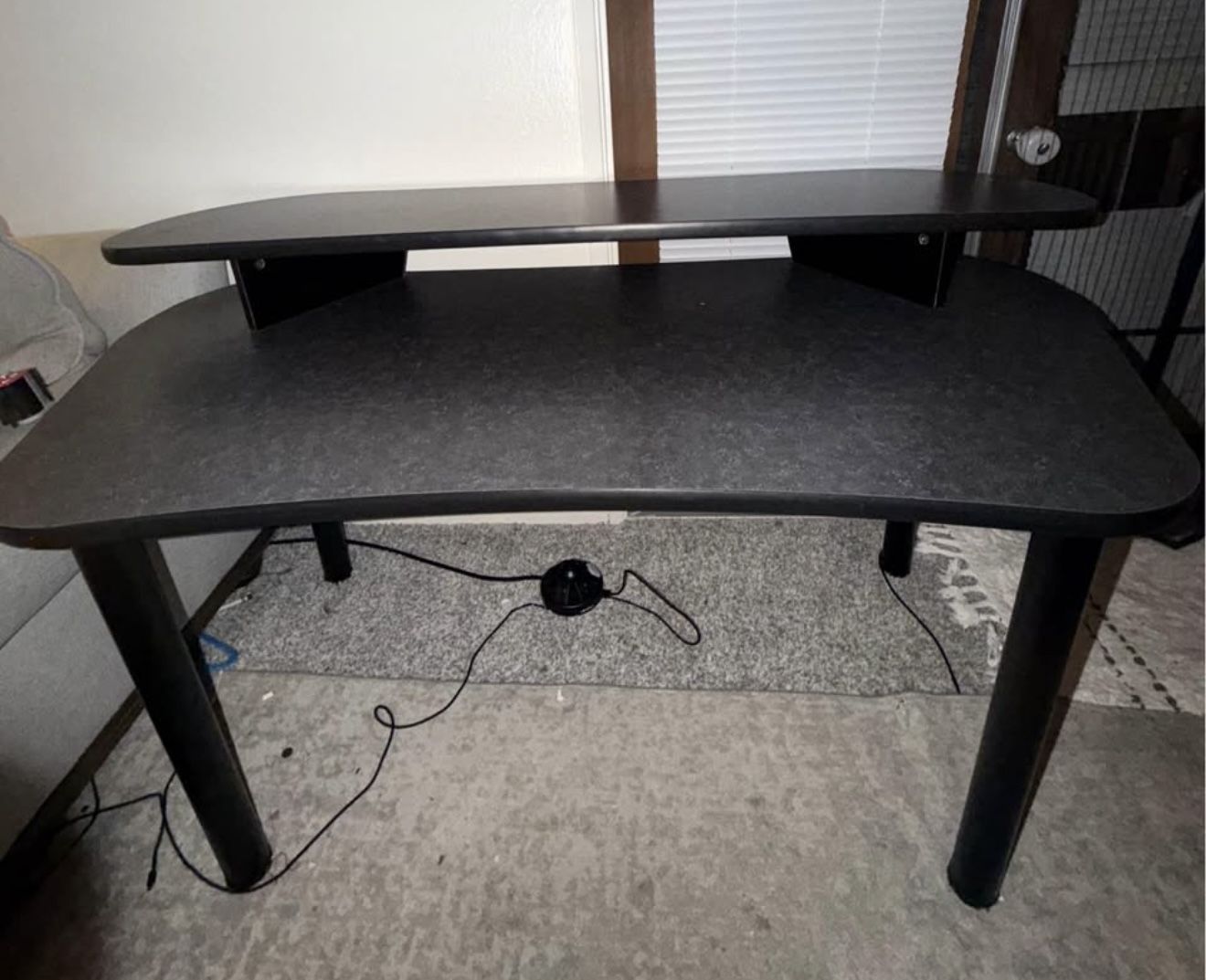 black and grey computer table or work table I used it as my gaming table no longer have space for it it’s heavy duty and in great shape