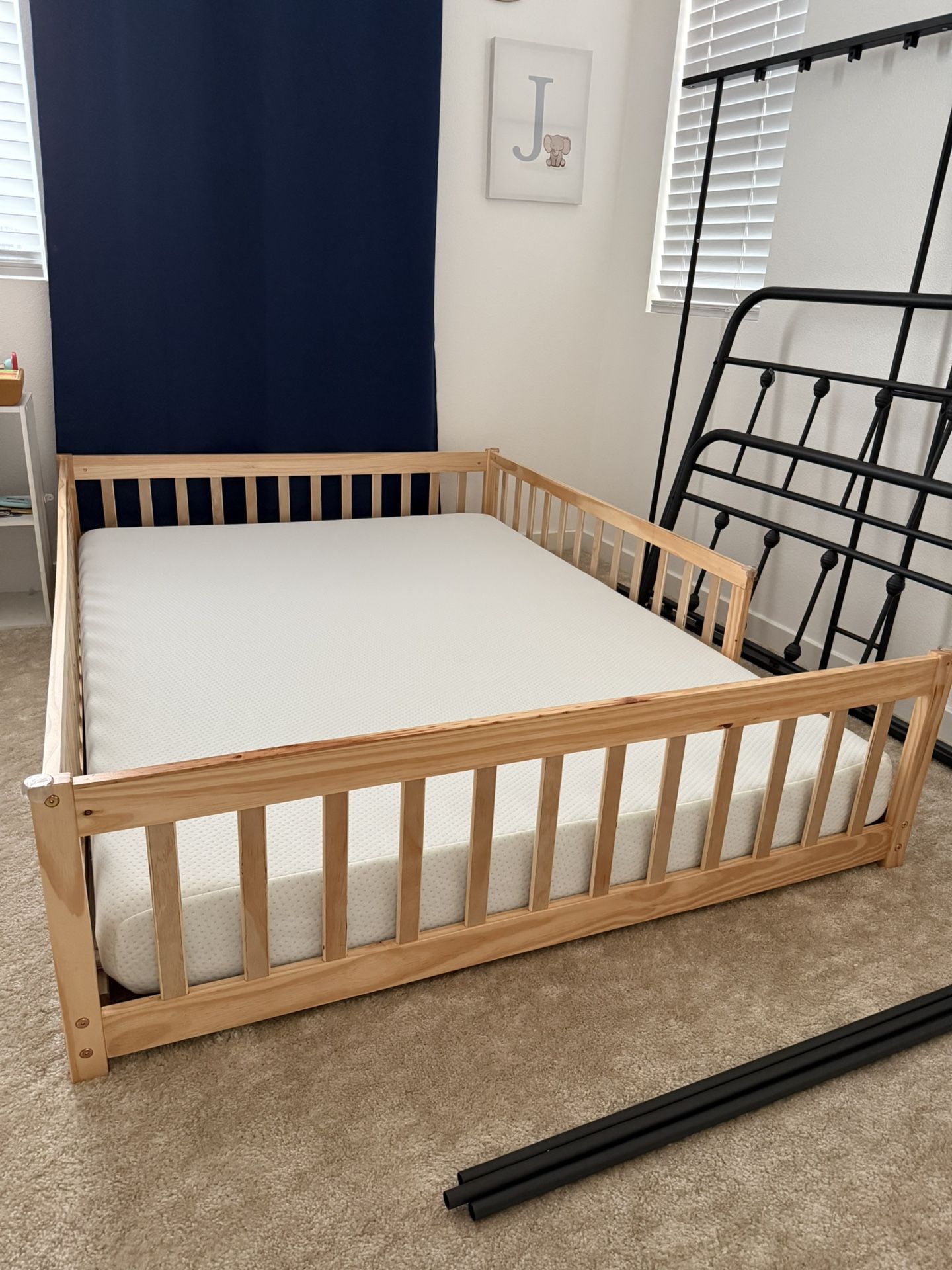6inch Zinus Green Tea Memory Foam Matress like new. no stains Montessori bed full size frame also purchased 1 yr ago like new. selling both together