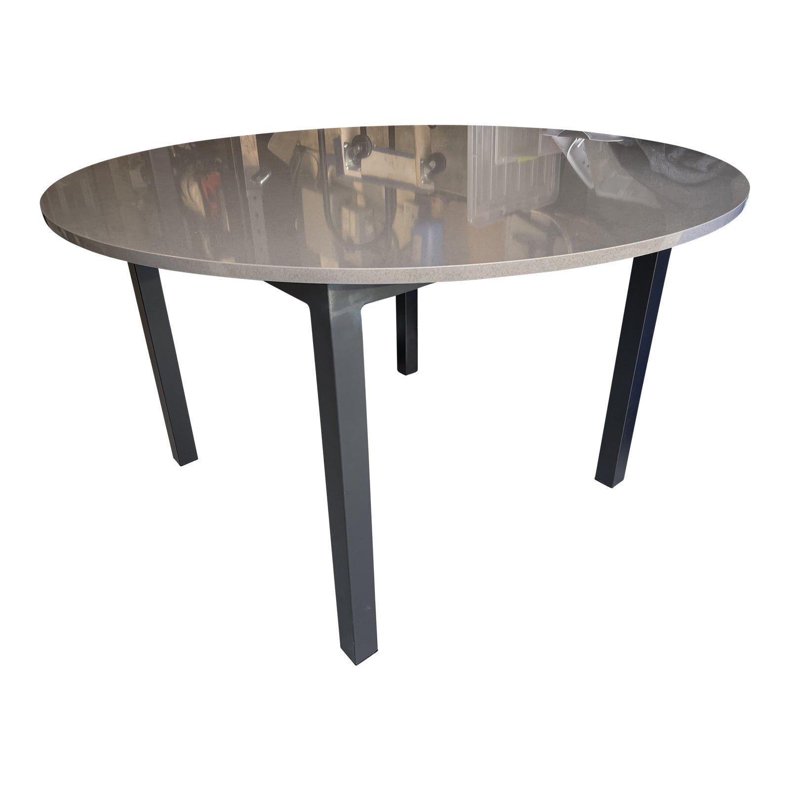 Grey Quartz Top Parsons Table from Room & Board. It has a 50" diameter and is 29" tall. It looks like Room & Board does not make the exact same table anymore, but they have the rectangular equivalent with identical materials I bought the table 6 years ago directly from R&B. It's hard to take a picture because the surface is super reflective, but the table has been treated well over the years -- it's just not the right shape for my current living situation I bought directly from Room & Board around 5 years ago. The equivalent rectangular table is going for $1400 at R&B right now. Notes on condition: There are some fine scratches on the legs that are included in the photographs, but these would not be noticeable in day-to-day usage