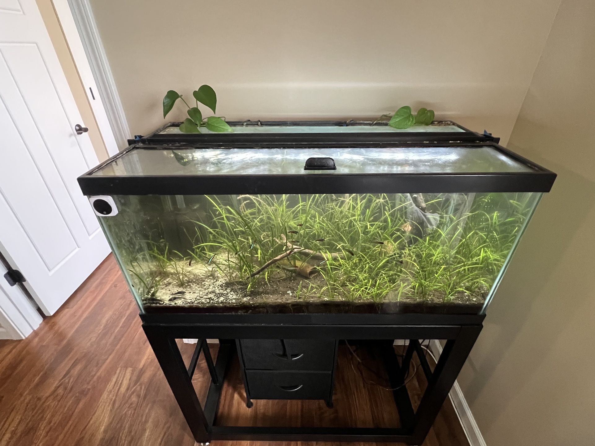 No cracks, no leaks. Moving out and need someone to take this off my hands! Includes tank, stand, and light. I have a few accessories I can also throw in. $75 or best offer! Pickup only