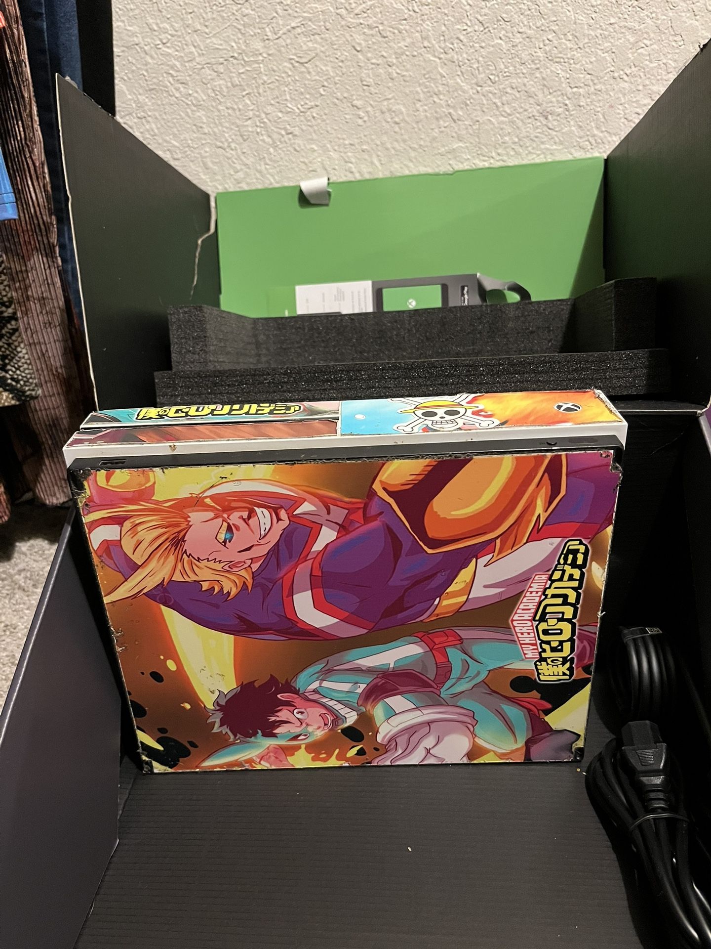 Good condition my son got the new Xbox.. wrapped in anime skin but you can buy a new skin off Amazon.