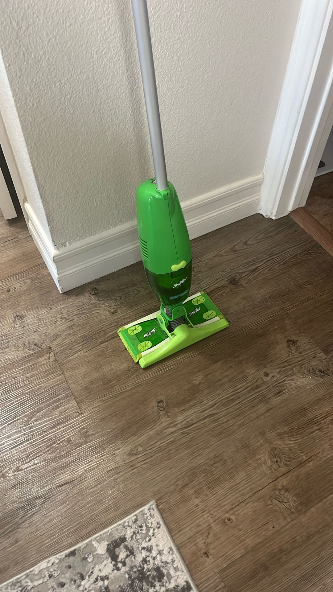 Swifter. No charger for the liquid dispenser. Electronic Liquid dispenser no longer holds charge so does not work. Swifter part works fine.
