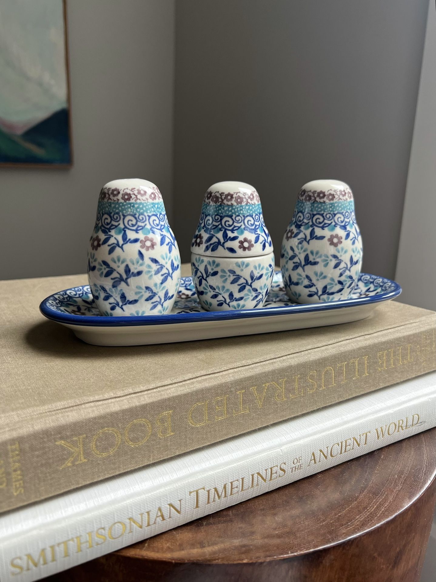 Vintage Handcrafted Boleslawiec Condiment Set ( firm on price )