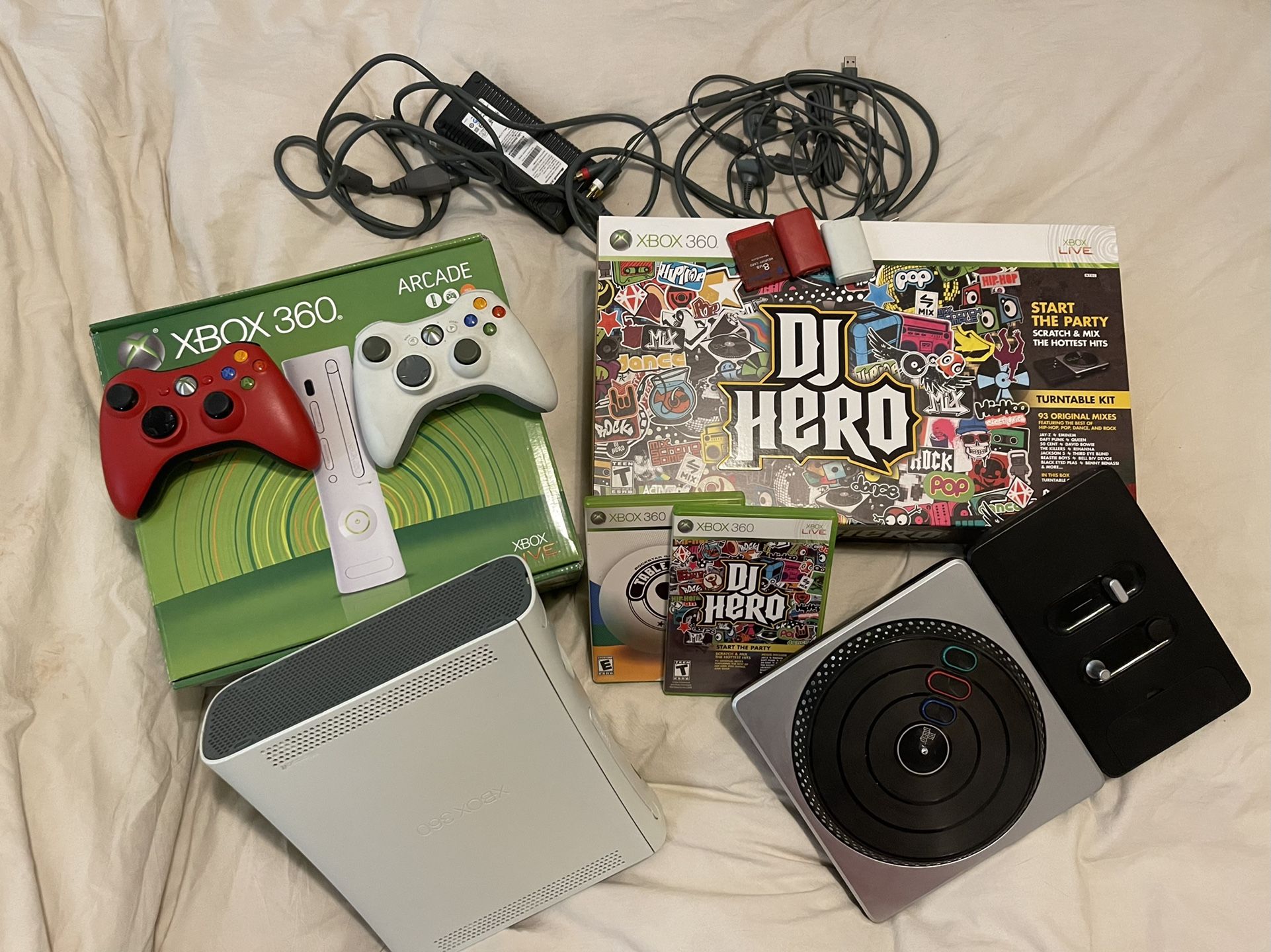 XBOX 360 Arcade + DJ Hero + Table Tennis π + 2 Controllers + Memory Card