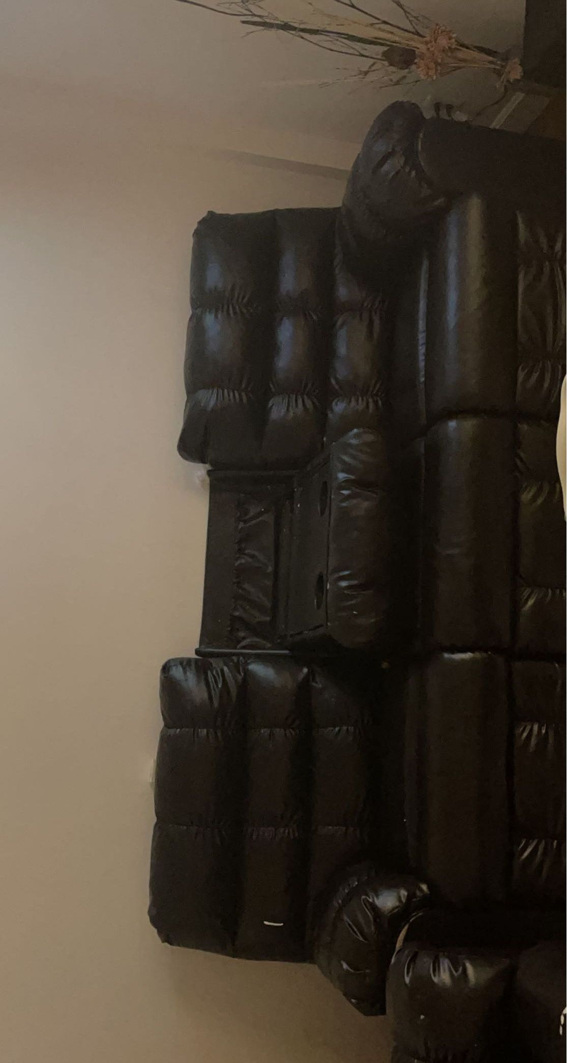 Dark brown, black ish color. Has some tears & paint on it (might come off with proper cleaning) originally over $5000. $1000, for both & buyer is responsible for pick up & removing items. For the two seater, both seats recline with storage in the middle & two cup holders. For three seater, both ends recline. Top of middle seat pulls down for usage or pocket storage. OPEN TO OFFERS.