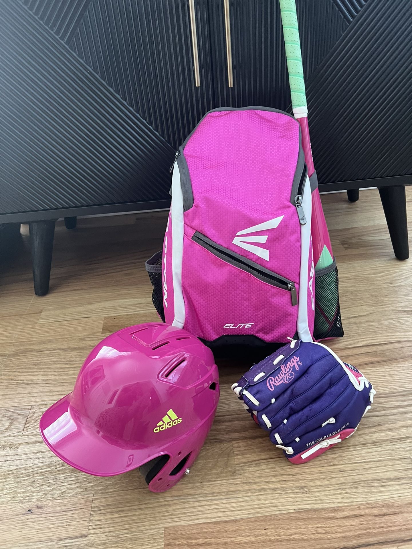 Small girls hardball bat , cleats , glove ,helmet, and travel bag