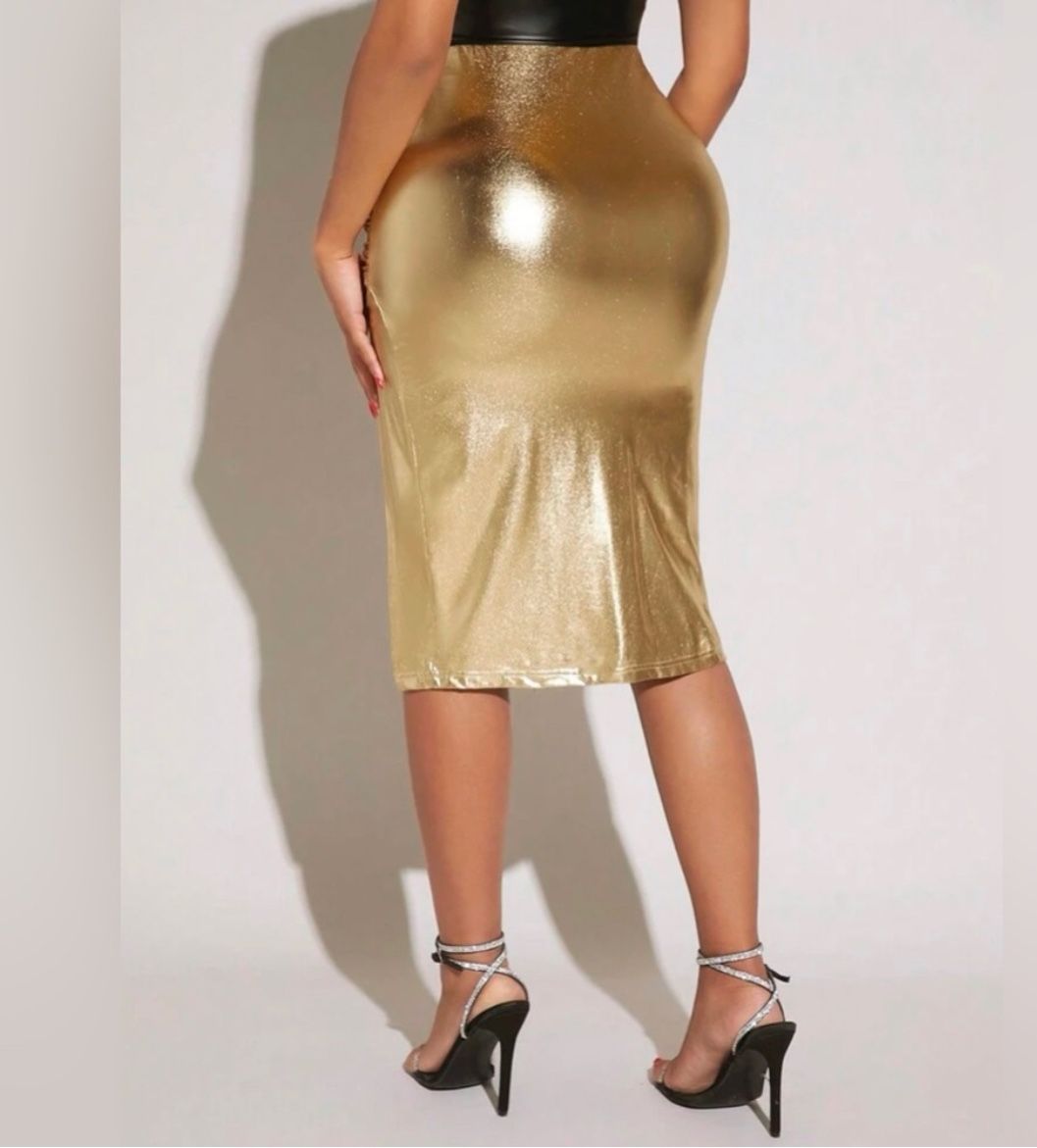 New Without Tag 👑⚜️💿 Laina Rauma holographic golden spandex bodycon pencil skirt Sizes S, M