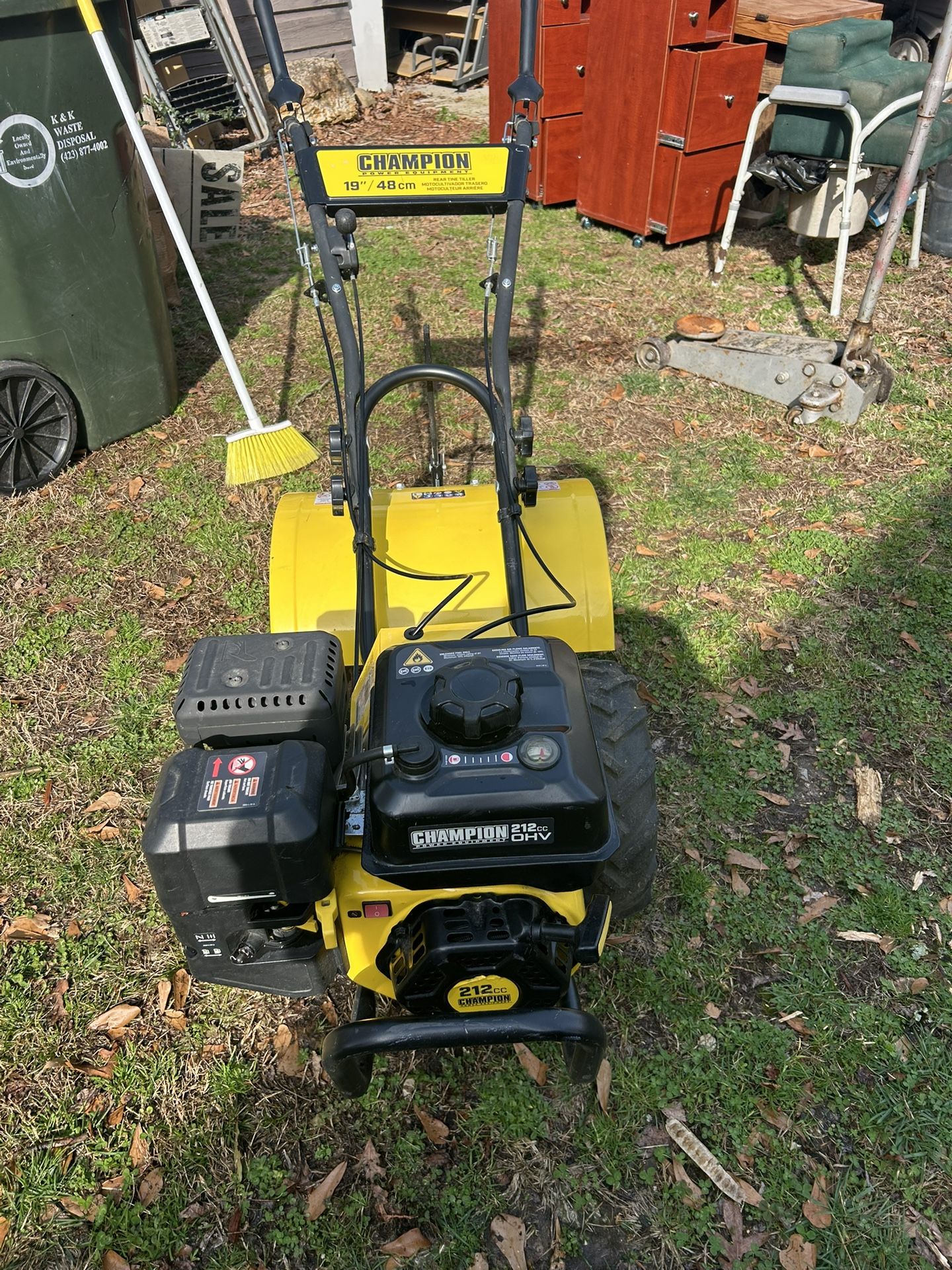 19 in. 212cc 4-Stroke Gas Counter Rotating EPA Rear Tine Tiller with Self-Propelled Agricultural Tires. Bought it new last year and used it one time. Very powerful. Started right up after year of storage. No damage.