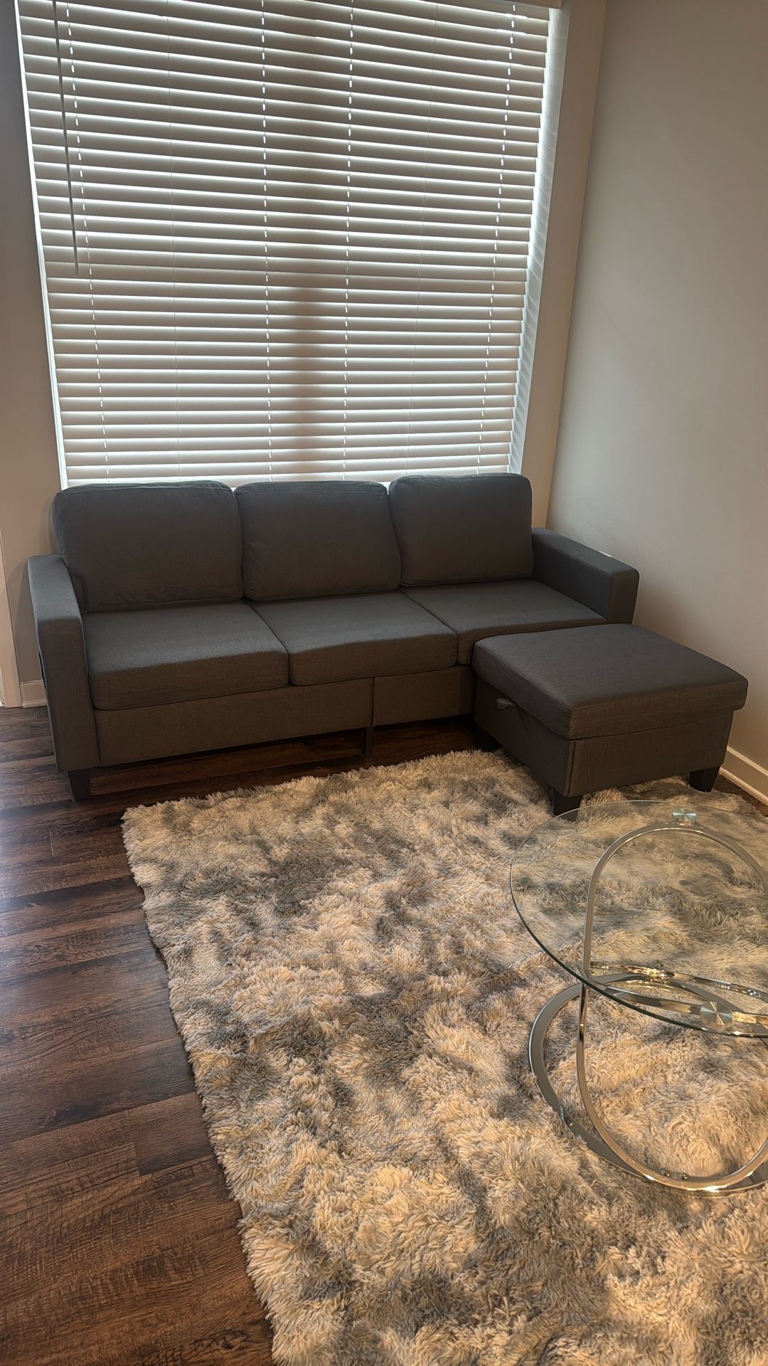 78" Sectional Sofa Couches for Living Room, Dark Grey Convertible L Shaped Couch with Storage Ottoman, Deep Seat Pet-Friendly Linen Fabric Sofa Set for Small Space, Apartment, Dorm. Contact 9088583416