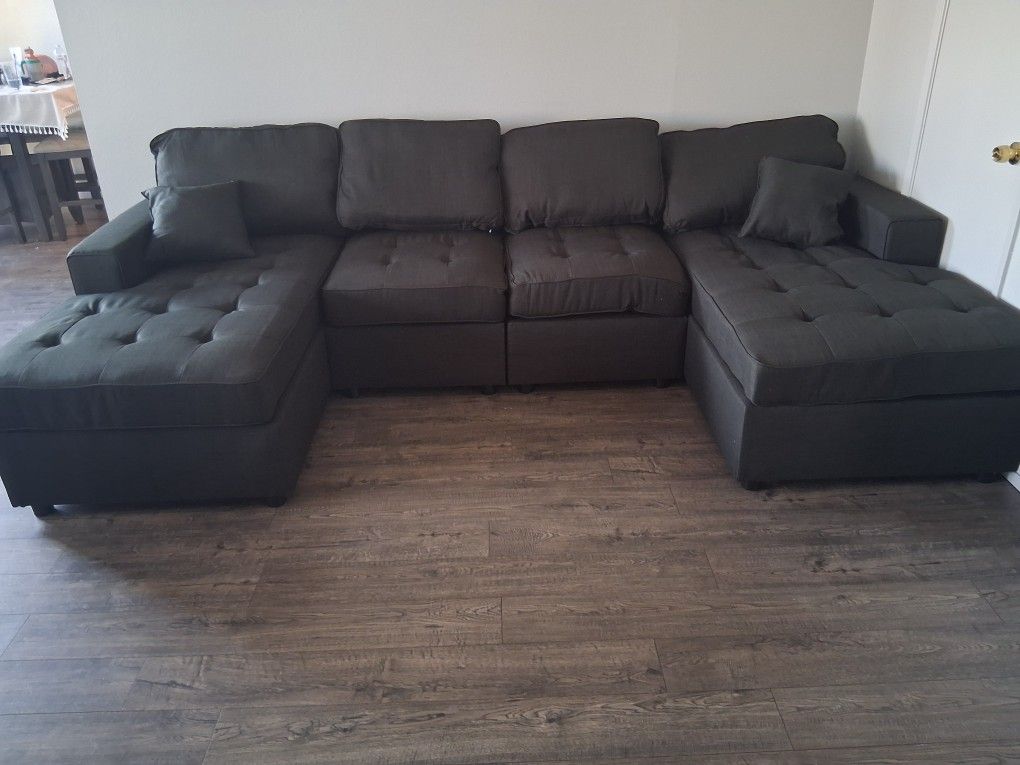 Also available in Dark blue(microfiber) Dimensions RAF/LAF Chaise: 30" x 34" x 35"H ; Armless Loveseat: 52" x 34" x 35"H Material Color: Ash Black ; Material: Dorris Fabric +MDF+Webbing+Fiber Batting+Foam+Hardware+Plastic Legs Brand new in the box straight from distributor. 6 month factory warranty included. Do offer delivery and assembly
