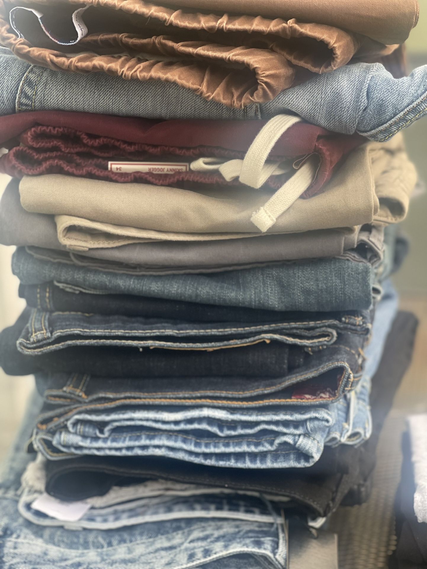 Pairs of Mens jeans for sale some are new with Tags / new without tags ones and if you worn once twice at most size 3430 you may find a pair of 32 waist in here… all good quality mostly name brand one pair loan brand new with the tag is over 50 bucks. Make me an REASONABLE offer for the whole bundle. NO LOW BALLS OFFERS WILL BE ACKNOWLEDGED OR ACCEPTED If this is your size you got a whole stack of QUALITY pairs of jeans to add to the wardrobe … all you gotta do now grab some graphic tees and plain T-shirts and you in the game 💪🏾 💯…. Check out my page for other offers & great deals. North Houston /Woodlands area