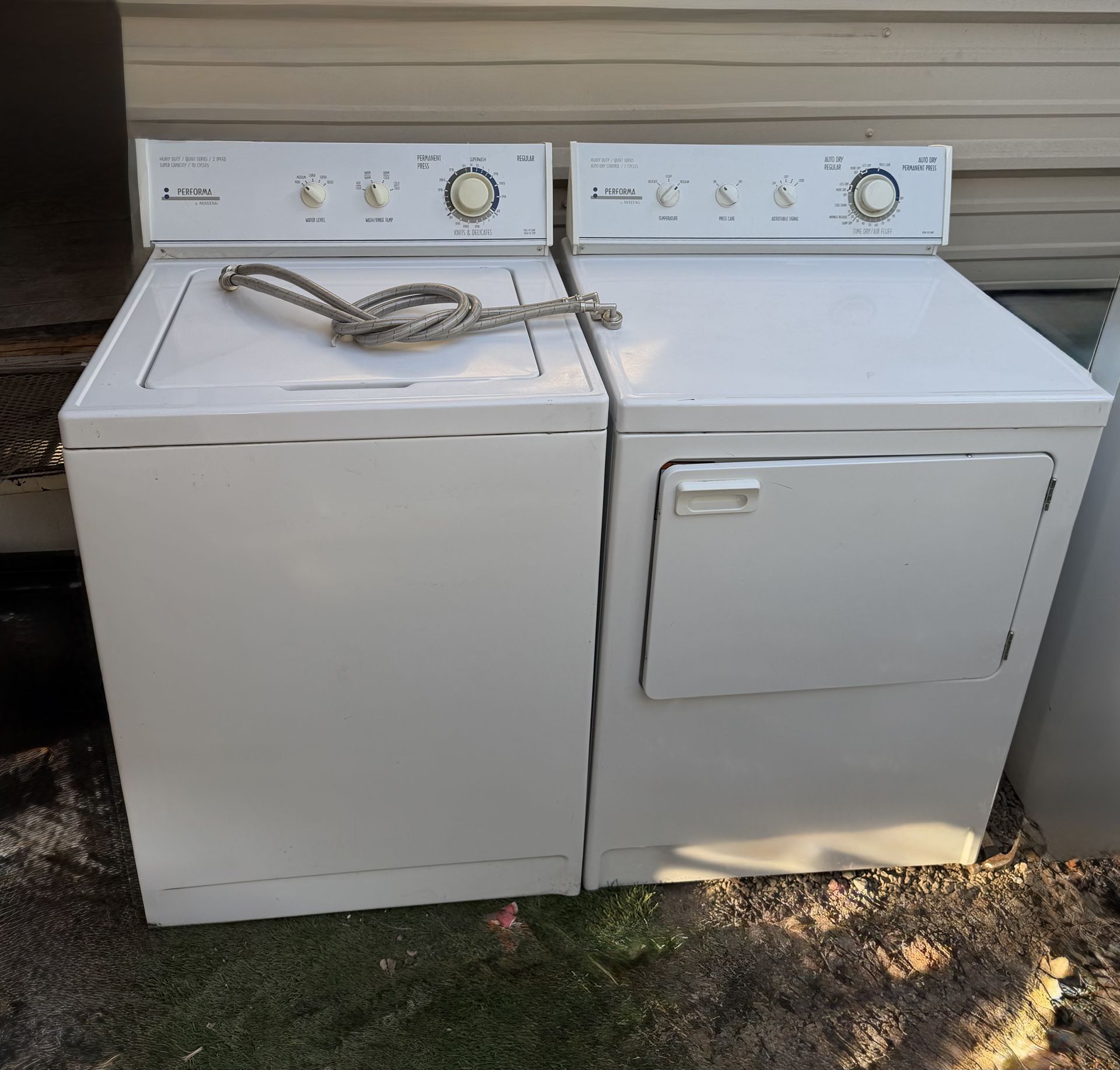 WASHER AND DRYER ELECTRIC SET MAYTAG PERFORMA WASHER HEAVY DUTY / QUIET SERIES / 2 SPEED SUPER CAPACITY / 10 CYCLES DRYER ELECTRIC HEAVY DUTY / QUIET SERIES AUTO DRY CONTROL / 7 CYCLES BOTH WORKS PERFECTLY INCLUDE HOSES ASAP