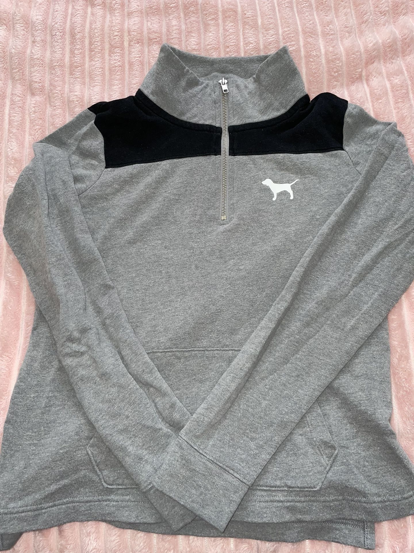 PINK Victoria’s Secret Gray And Black Quarter-zip Pullover