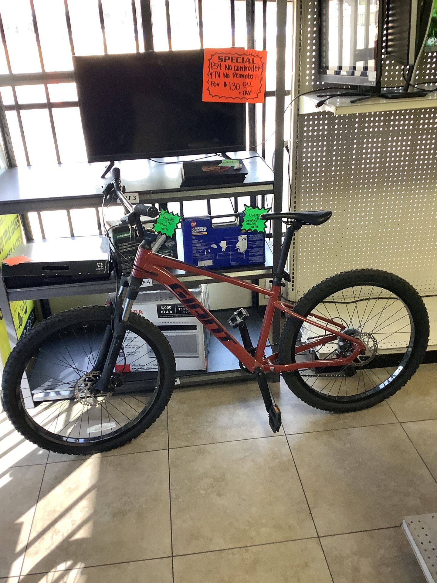Giant Talon 2 (Red Clay) Size SMALL. Used mountain bike does have wear from use but overall 6/10 condition PICK UP ONLY Is missing 2 bolts on the handlebar clamp. Front brake lever is bent, and handlebars do not appear to be factory. Now pictured. Just put air in the tires. Will update if they go flat Welcome to come check out in person NO DELIVERY Oro express Mesa pawn shop Ask for Jesse Pickup only , no trades . 421 E Broadway rd Mesa,Az Monday- Saturday 9am-7pm Sunday 10am- 6pm 4806108009