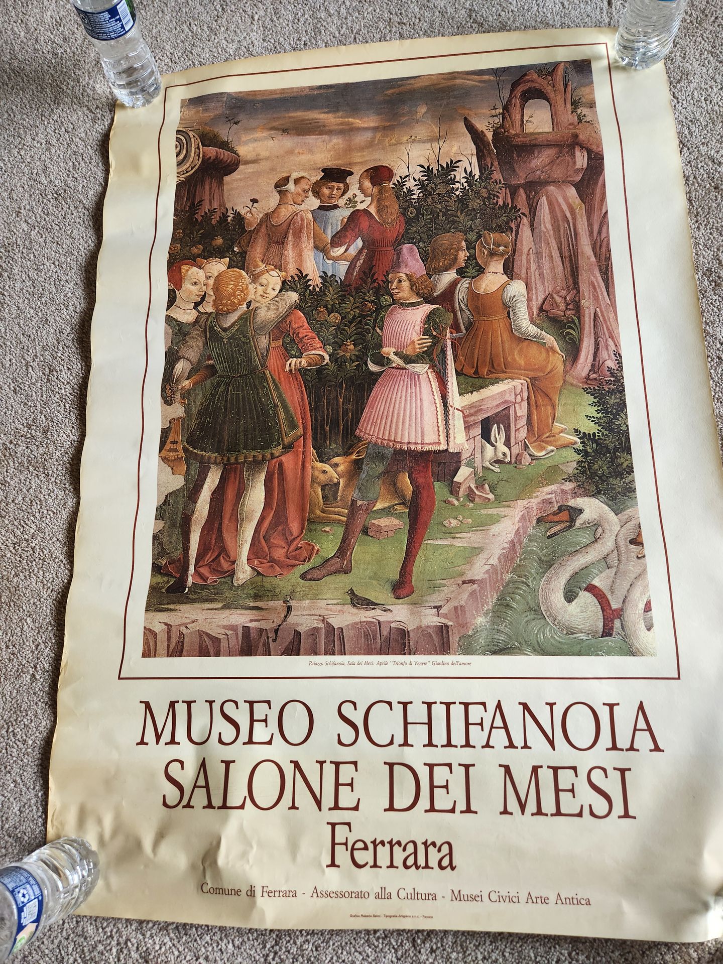 Palazzo Schifanoia, Sala dei Mesi: Aprile "Trionfo di Venere" Giardino dell'amore. Large poster 39” X 27”. Condition is om. Has been in storage for awhile. Does come from a former smoking household. $15 OBO. Cash only Porch pickup west side of Bolingbrook near Kings and Boughton.