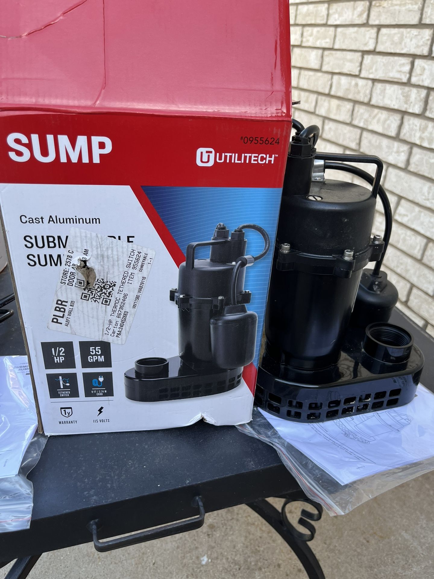 Utilitech brand submersible pump. Cast aluminum 1/2 hp 55 gpm
